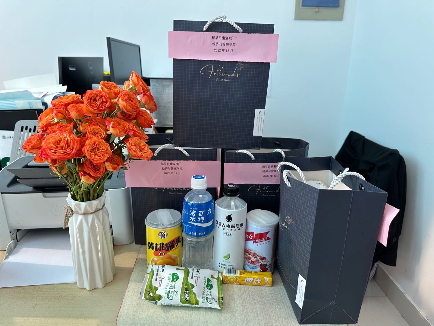 为了不打扰考研同学专心复习,也为了同学们的安全考虑,辅导员老师们挨门挨户将”盲盒“礼袋送到了学生宿舍门口,完成了无接触配送。在特别的时期,将特别的爱,以特别的方式,送给特别的考研学生们。
