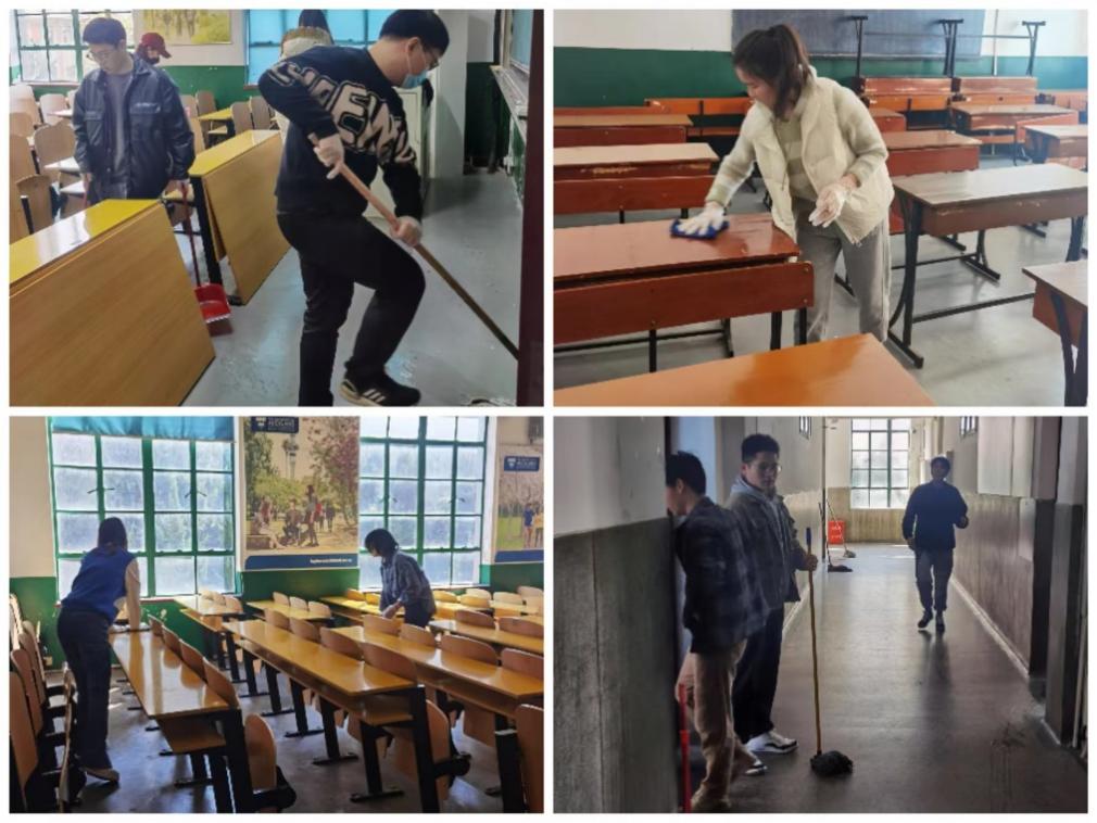 本次活动在研会工作人员的精心组织下有序进行,从分配清洁区域、分发清洁工具到分组有序打扫,每一位志愿者不怕脏、不怕累、不放过任何一个卫生死角。温暖明亮的阳光透过窗户照射在志愿者的身上,映射出他们勤劳、忙碌的身影。经过4个多小时的辛勤劳作,32号楼的上课教室变得干净整洁、宽敞明亮,迎接新一周的教学活动。最后,志愿者们有序归还清洁工具,活动圆满完成。