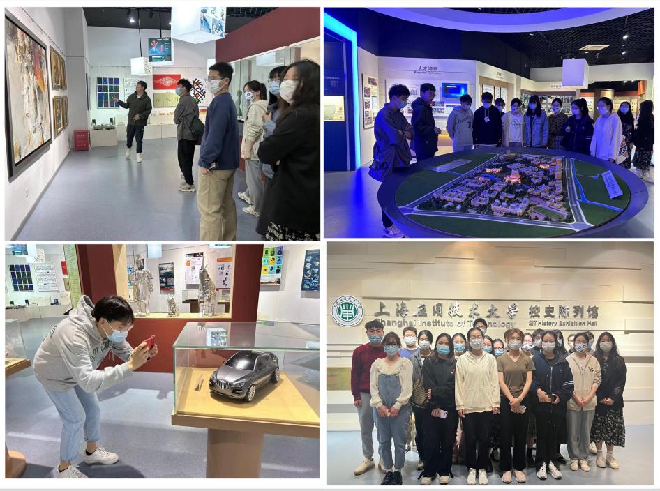 同学们跟随讲解员志愿者充分了解学校69年来紧跟新时代的发展故事与辉煌历史。校史馆分为4个部分,序馆展示了校徽、校训、校歌以及学校历史沿革;历程馆展示了“三校一所”,一张张老照片见证了历史;新校馆展示了各级领导对学校关怀和题字、历任和现任领导简介、奉贤校区沙盘模型、科研教学成果、国际交流等,合校以来的发展历历在目;专题馆展示了上应人的创新设计及艺术修养,油画、海报、包装设计、工业设计令人耳目一新。