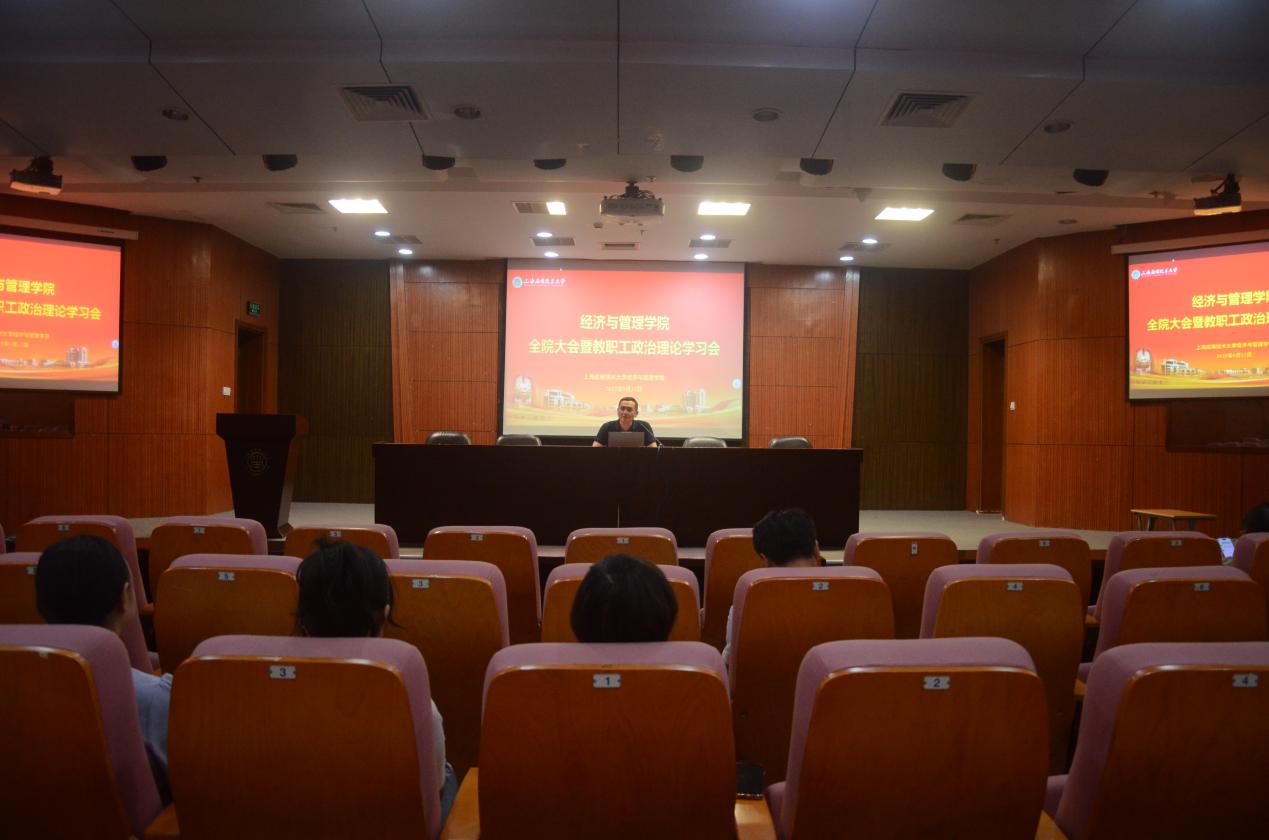 2025年9月12日,经济与管理学院秋季学期全院大会暨教职工政治理论学习会在徐汇校区图书馆116会议室召开。会上,学院开展了教职工政治理论学习,总结上半年主要工作,全面部署新学期工作重点和主要任务。