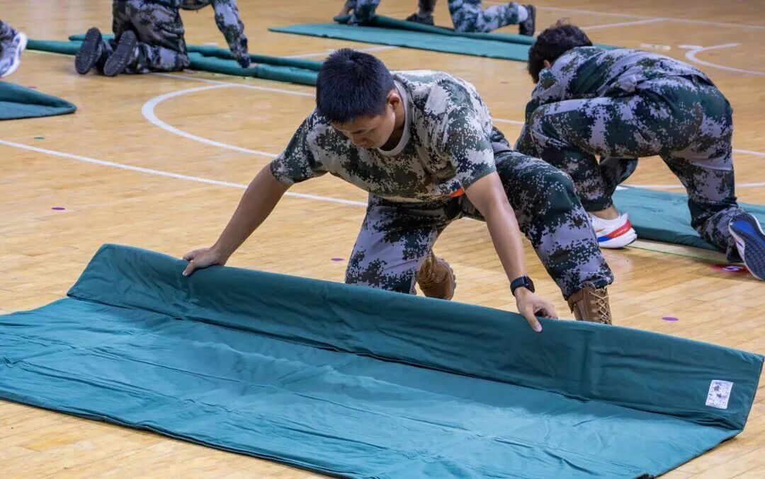 为丰富军训期间的文化生活,2025年9月17日,我校举办了叠被子比赛。经管学子于训练间隙勤勉练习,积极备赛。比赛当日,体育馆内床铺整齐列阵,被褥静待巧手。号令一响,同学们迅速展开行动——铺平、拉直、拍压、折叠,动作流畅如诗。方寸之间显匠心,叠被虽简,成器却难,唯有反复锤炼,才得迅速、准确与美观。