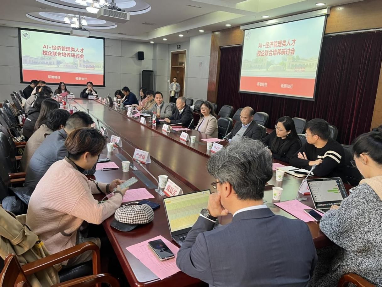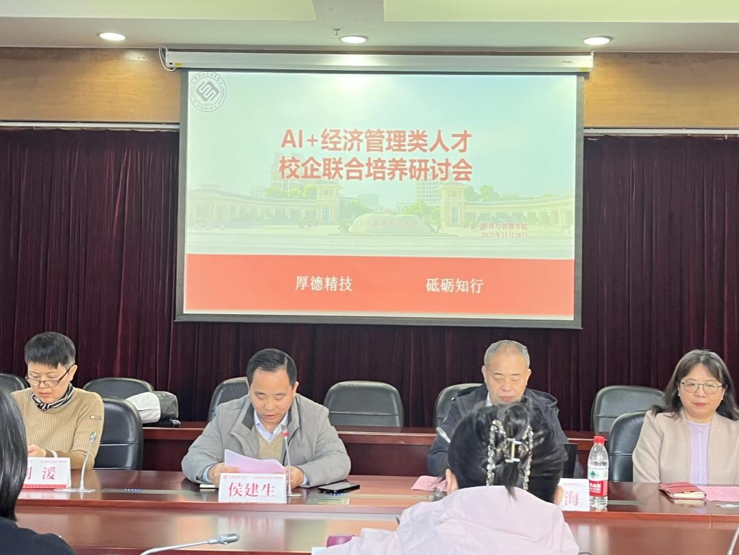 为进一步推进教育综合改革,深化校企产教融合的双元育人机制,广泛听取用人单位对学院人才培养工作的意见与建议,11月28日,经济与管理学院于图书馆117会议室举办了主题为“AI + 经济管理类人才校企联合培养”的研讨会。来自东富龙科技集团有限公司、华数传媒有限公司等近20家企业的嘉宾出席了本次会议。学院党委书记侯建生、副院长于本海以及各系主任均参与会议,会议由副院长于本海主持。