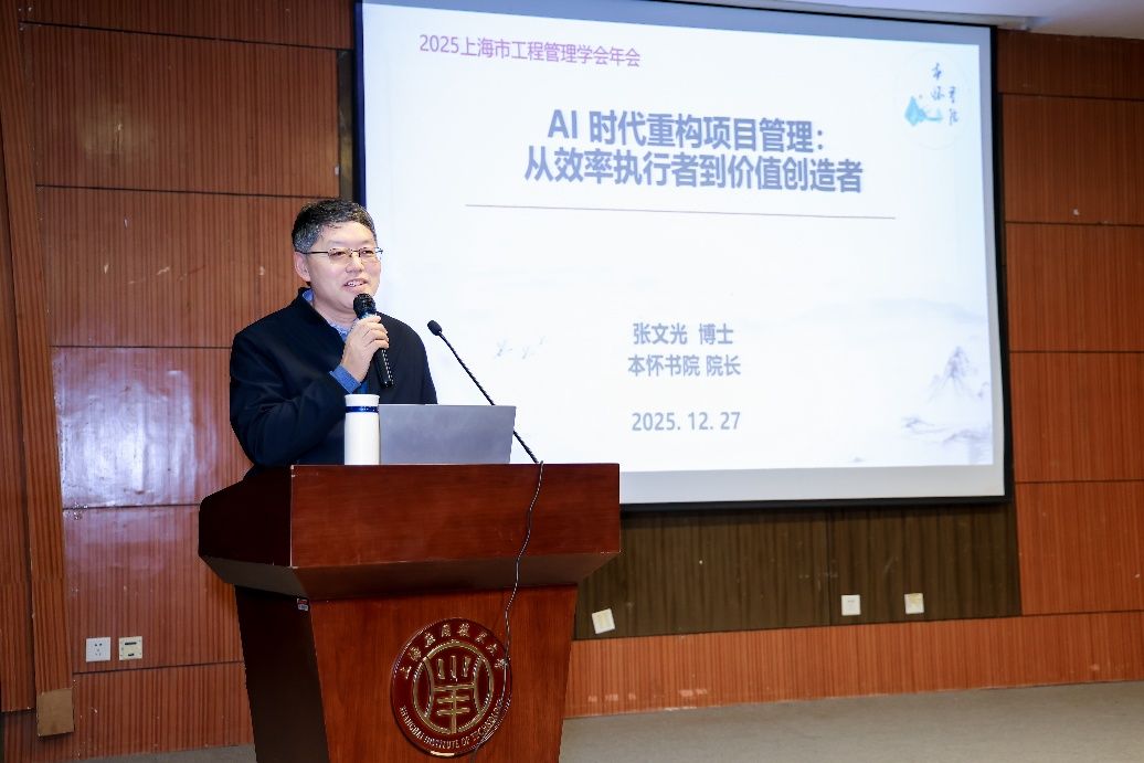 在学术报告环节,本怀书院院长、上海传慧文化传播有限公司首席专家张文光博士作了题为“AI时代重构项目管理:从效率执行者到价值创造者”的报告。立足AI时代项目管理实践,融入中国传统哲学思想,系统阐述了项目管理从注重效率执行向聚焦价值创造转变的新理念与新路径。