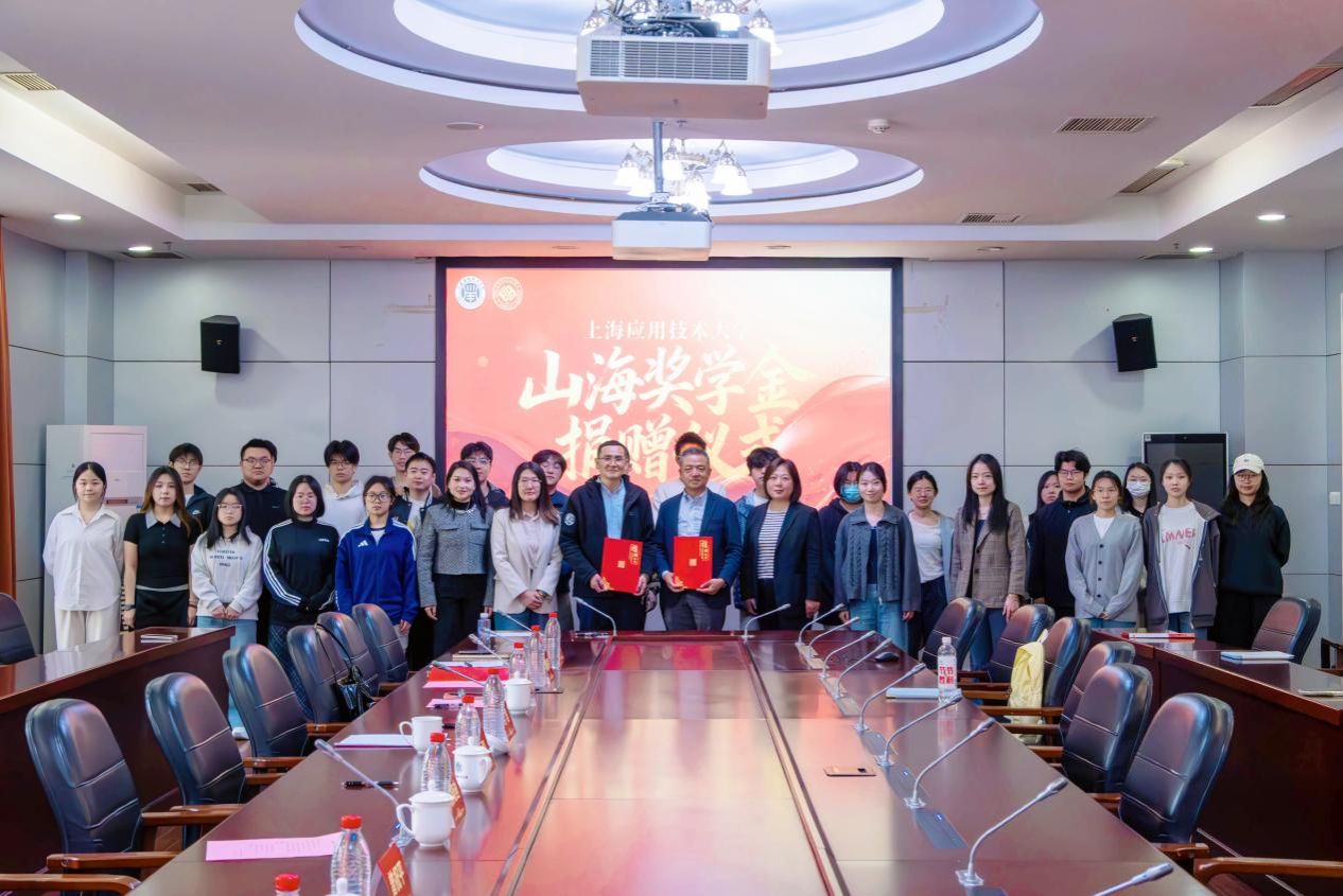4月24日下午,“山海奖学金”捐赠仪式在上海应用技术大学徐汇校区图书馆117室举行。上海耶里夏丽新迪餐饮管理有限公司总经理朱强、品牌宣传负责人侯晓迪,上海应用技术大学经济与管理学院党委书记熊焰、党委副书记、副院长徐津津出席会议。捐赠仪式由易毅主持。