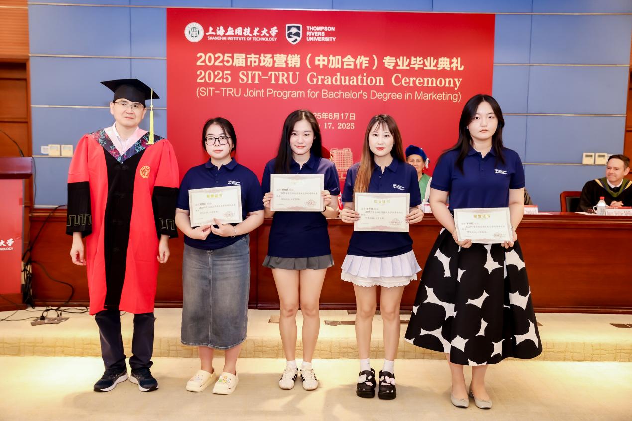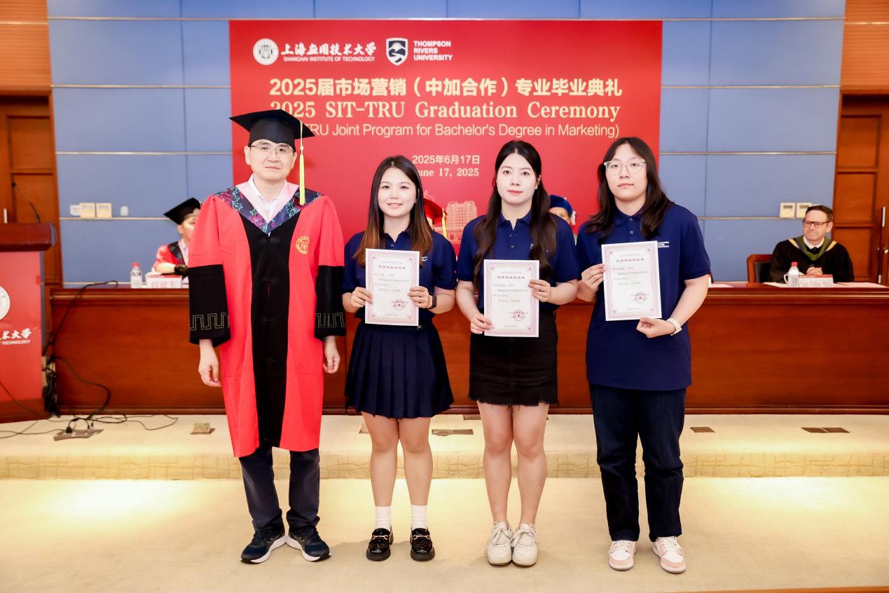 毕业典礼上宣读了上海市优秀毕业生、上海应用技术大学优秀毕业生名单、汤姆逊大学Top GPA和TRU Star毕业生名单并颁发荣誉证书。双方领导分别为毕业生颁发上海应用技术大学毕业证书和授予加拿大汤姆逊大学学位证书。