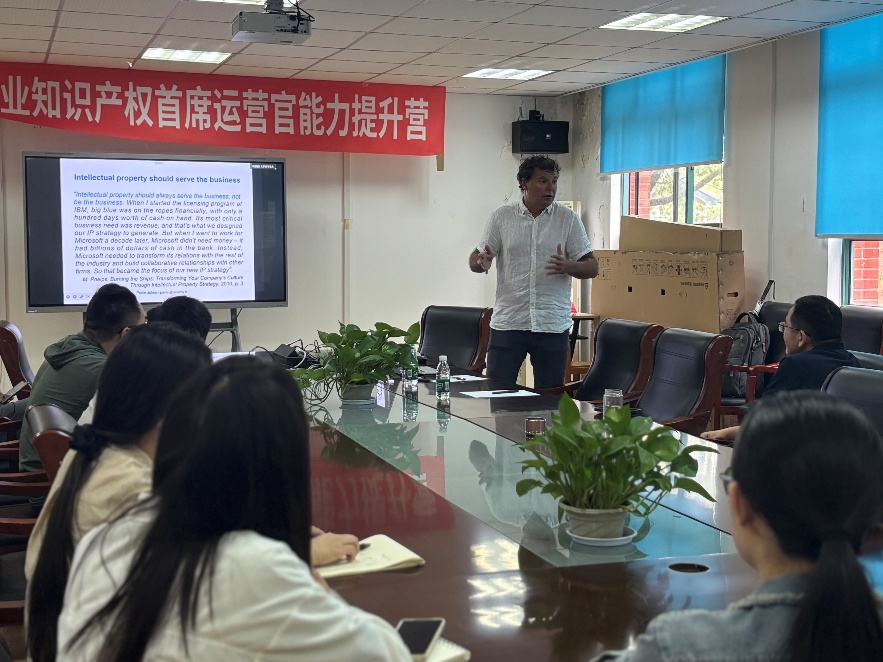 交流期间,Julien Penin教授与经济与管理学院青年老师和研究生开展了一场学术研讨,研讨内容围绕 “数字经济时代的知识产权保护策略与技术转移壁垒突破”展开,他结合最新案例与师生们分享了人工智能、绿色技术等前沿领域的知识产权布局逻辑,以及跨国技术转移中的法律与市场挑战。现场学术氛围十分浓厚。