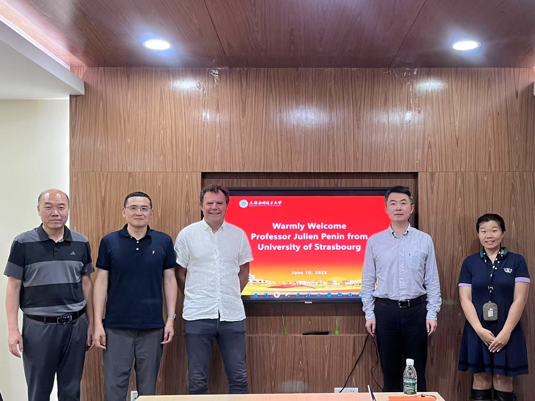 2025 年 6 月 10 日,法国斯特拉斯堡大学Julien Penin教授受邀莅临上海应用技术大学开展学术交流与合作研讨,上海应用技术大学国际交流处处长陈青长、经济与管理学院院长熊焰及中欧知识产权学院相关人员参与会谈。