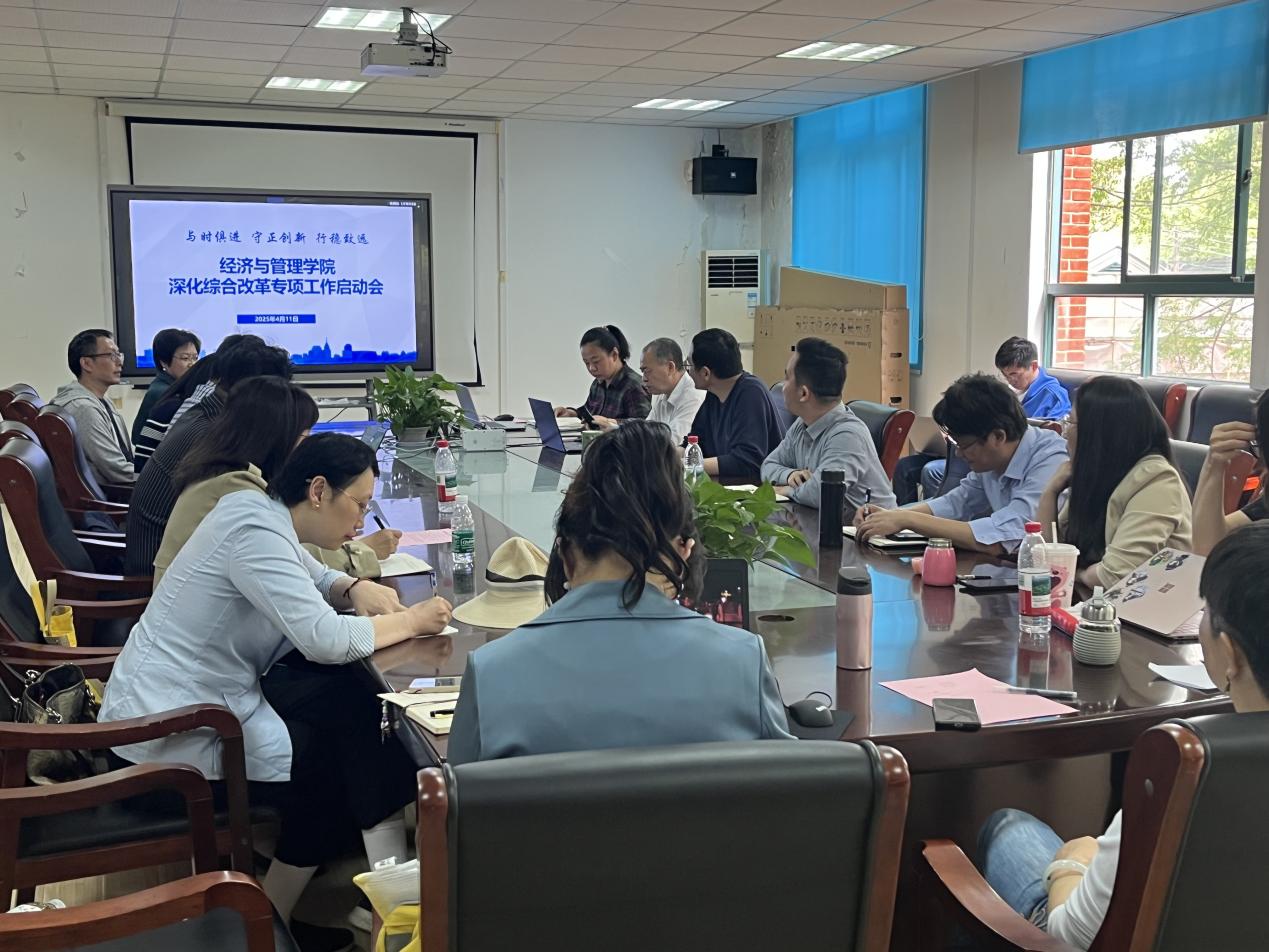 4月11日,经济与管理学院召开深化综合改革专项工作推进会。学院领导班子、系党支部书记、主任、各专项工作小组成员参加会议。会议由学院党委书记侯建生主持。