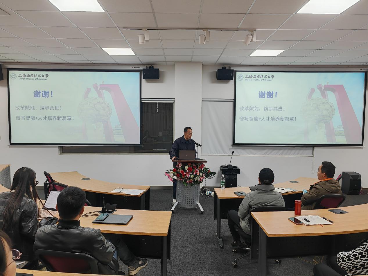 为深入学习贯彻习近平总书记在全国两会期间的重要讲话精神和2025年全国两会精神,聚焦提升人才培养质量,深化综合改革,3月14日,经济与管理学院在奉贤校区第五学科楼B408会议室举办经管学院应用型人才培养模式改革交流会。学院教学委员会全体成员、系主任、副系主任、教职工党支部书记及副书记参加会议。会议特邀智能技术学部机械工程学院副院长郑刚做题为“深化产教融合,打造‘智能+’应用型人才培养新高地”的主题报告。会议由经济与管理学院副院长张金福主持。