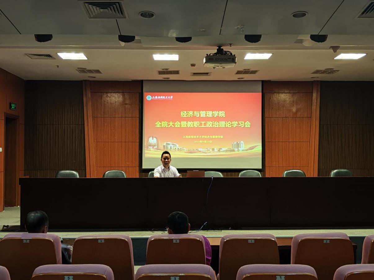 2024年9月14日,经济与管理学院秋季学期全院大会暨教职工政治理论学习会在徐汇校区图书馆116会议室召开。会议组织教职工政治理论学习,总结2024年春季学期主要工作,全面部署新学期工作重点和主要任务。