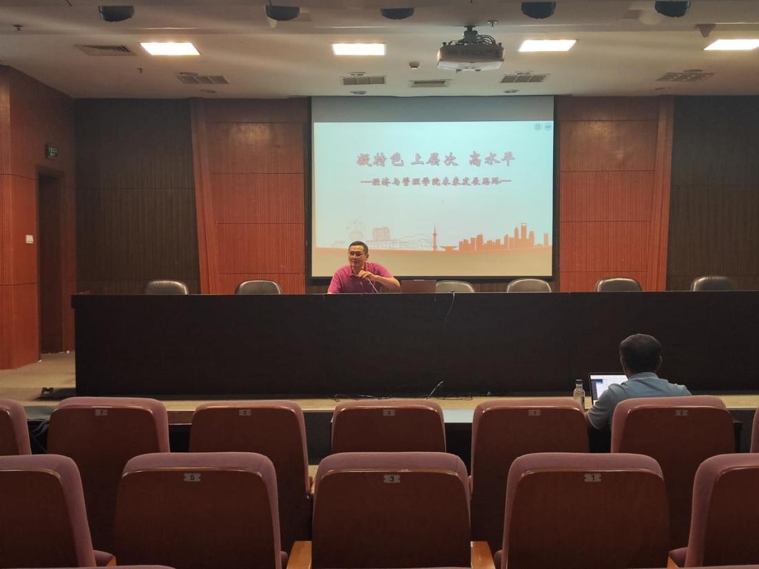 院长熊焰做了《凝特色、上层次、高水平---经济与管理学院未来发展思路》的工作报告。他分析了学院发展面临的形势,介绍了学院的发展基础,阐明了未来发展设想。指出,学院要做到特色发展、协同发展、国际发展,为建设成为具有国际视野的高水平应用创新型经济与管理学院而团结奋斗。下阶段,学院要重点做好五项建设工作任务即迎接新一轮本科教育教学审核评估、继续深化人才培养改革、积极筹备新一轮博士点申报建设、加快推进AACSB国际商学院认证、全面深化人事制度改革。他要求,全院上下要高度重视,静心准备,将审核评估作为对学院本科教育教学工作进行全面体检、把脉问诊的良好机会,以此为契机深化人才培养改革,推动本科人才培养质量再上新台阶。他表示,贯彻全国教育大会和党的二十届三中全会精神,最重要的是要以钉钉子精神谋划改革、拿出举措,推动落实。学院确定的五大建设任务必须要以改革为动力,全院上下要坚定改革信心,凝聚发展合力,推动学院发展取得新进展。