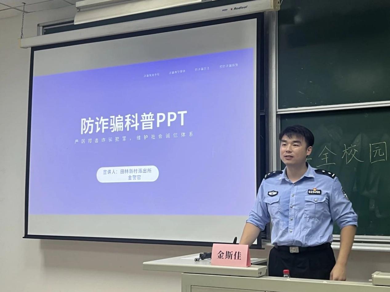 继“邪教危害与防范”讲座后,金警官又展开了有关防诈骗的科普。