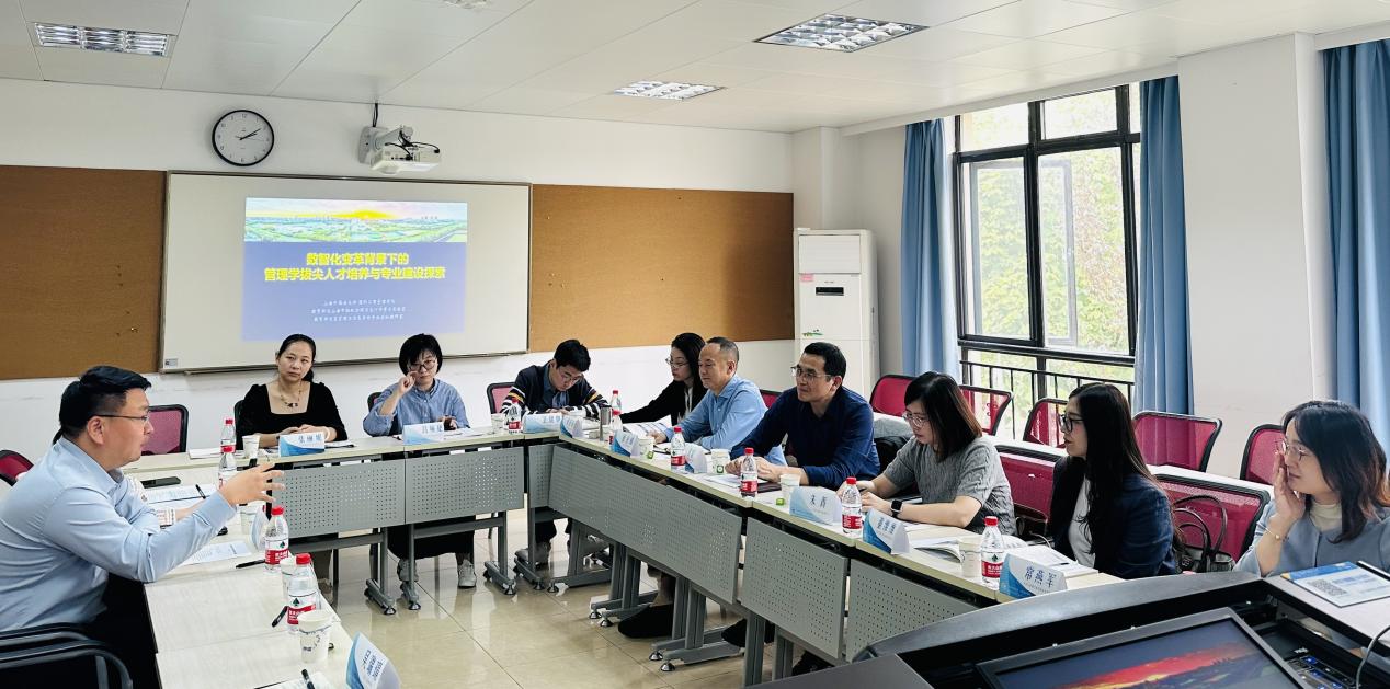 在座谈中,马宝君对我院代表团的到访表示热烈欢迎,并详细介绍了上海外国语大学国际工商管理学院在推进数字化与智能化改革方面的先进理念、实施路径和取得的成果。他分享了国际工商管理学院在服务国家战略需求、探索基础学科贯通式人才培养体系、建设人才培养平台等方面的实践经验和显著成效。汪丽则详细介绍了国际工商管理学院“以就业为导向”的三全育人体系,以及在学生培养的各个环节中始终坚持的“以学生为中心”的全方位育人理念和取得的成效。