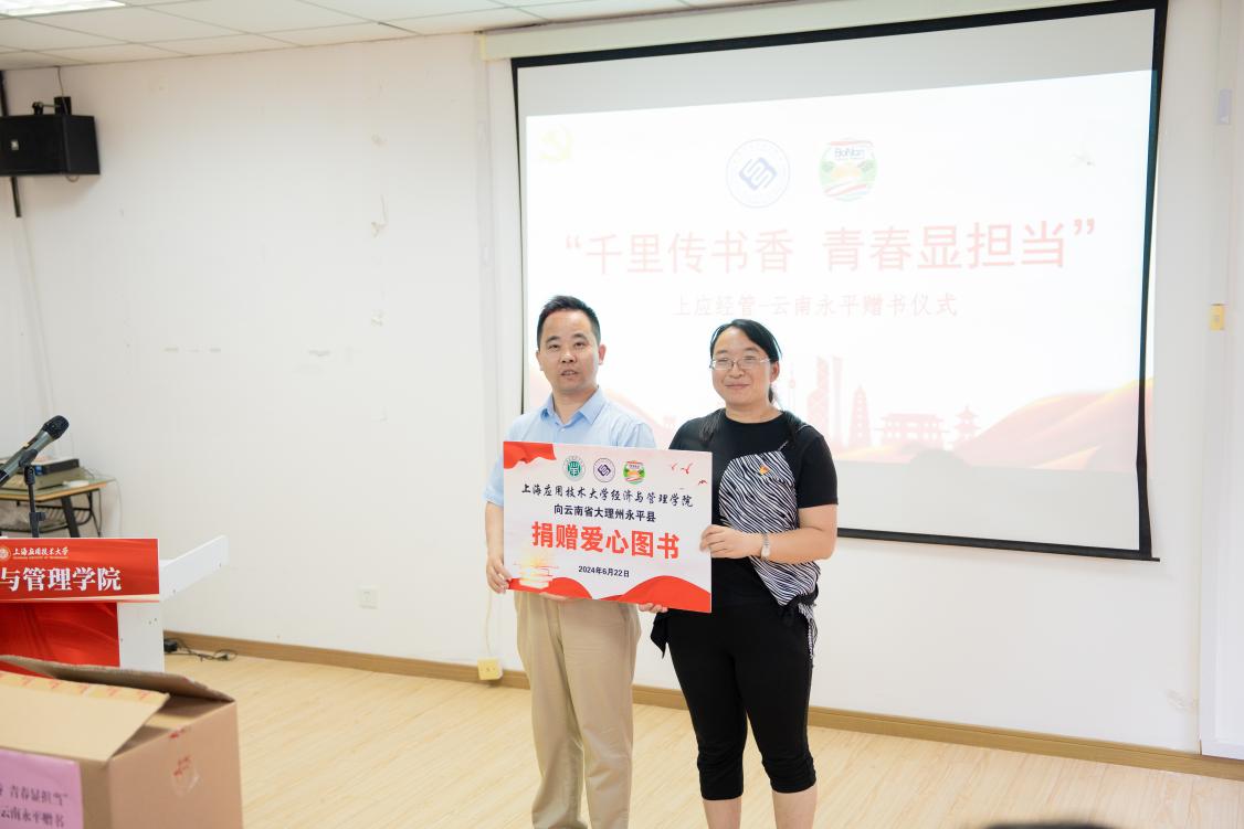 会上,侯建生祝党员同志们毕业快乐,希望毕业生党员们有梦想,怀揣理想信念;守底线,映照未来之路;肯奋斗,扎实走好每一步。同时,他代表学院向云南省大理州永平县捐赠爱心图书,云南省永平县干部何丽代表永平县接受赠书,何丽也欢迎各位同学能来到美丽的永平进行社会实践、基层锻炼。