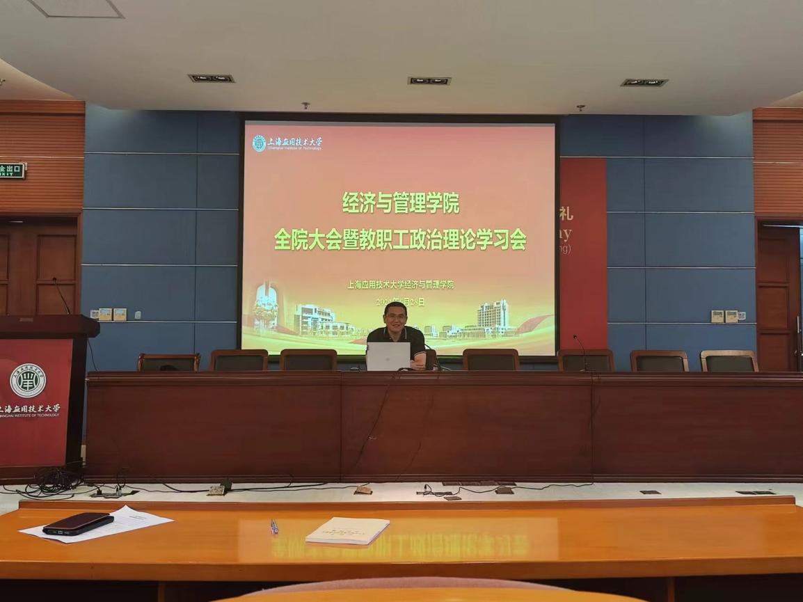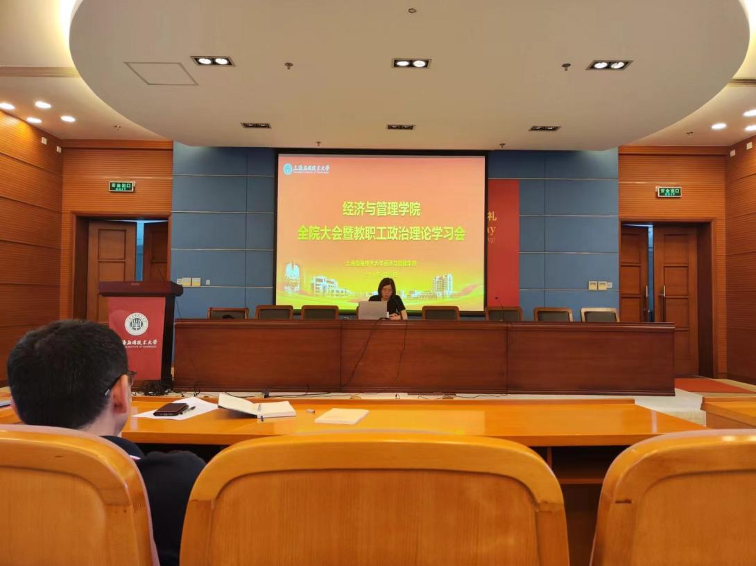 6月28日下午,经管学院在奉贤校区行政楼117会议室召开全院大会暨教职工政治理论学习会议。学院领导班子成员,全体教职工参加会议。