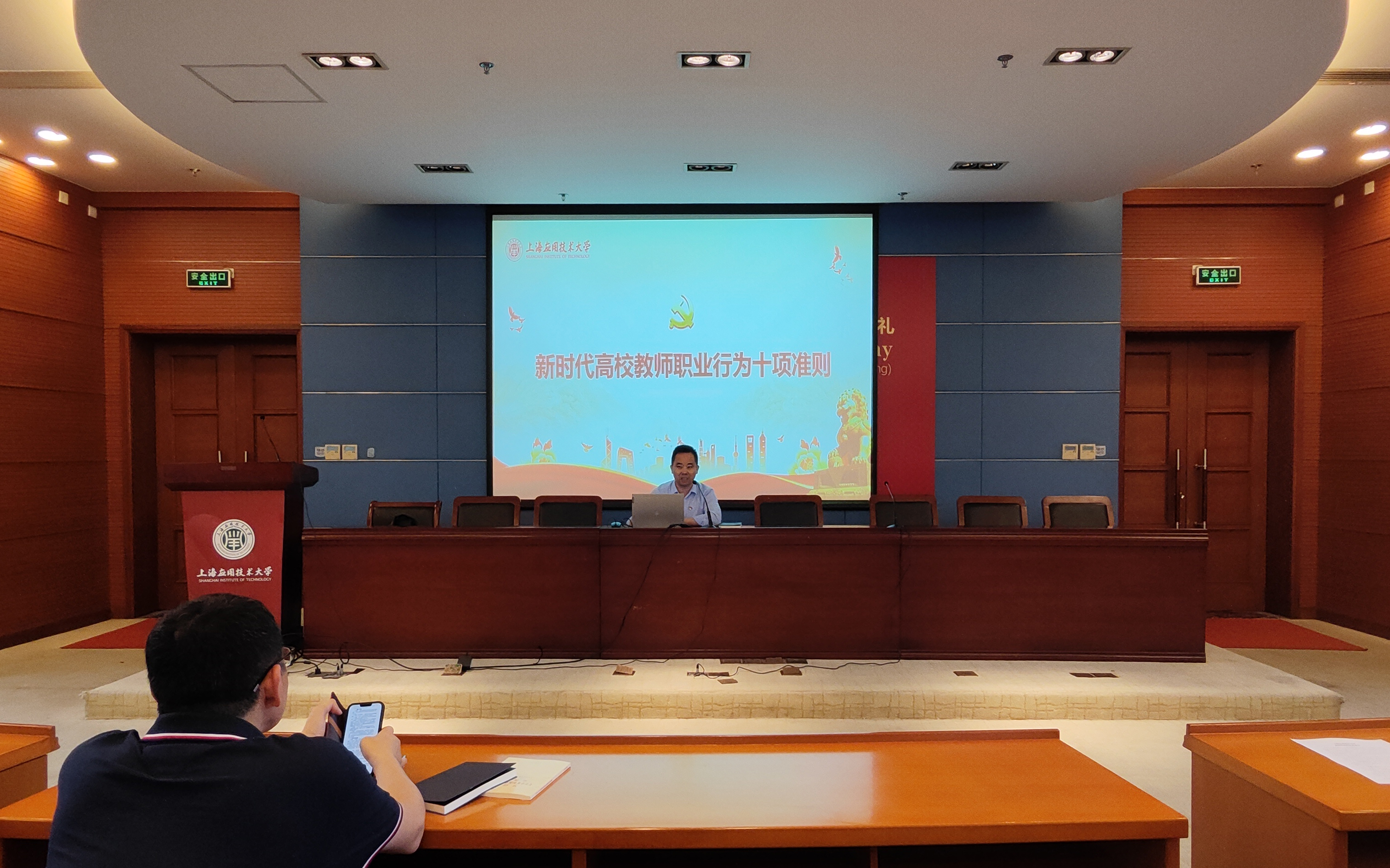学院党委书记侯建生结合开展党纪学习教育有关精神和要求,把党纪学习教育与推进师德师风专题学习相结合,带领全院教职工学习《新时代高校教师职业行为十项准则》《研究生导师指导行为准则》和《上海应用技术大学教师师德师范行为处理办法》,希望学院全体教师要认真落实立德树人根本任务,弘扬新时代高校教师道德风尚,为党育人,为国育才。侯建生还对全体教师进行了安全教育。