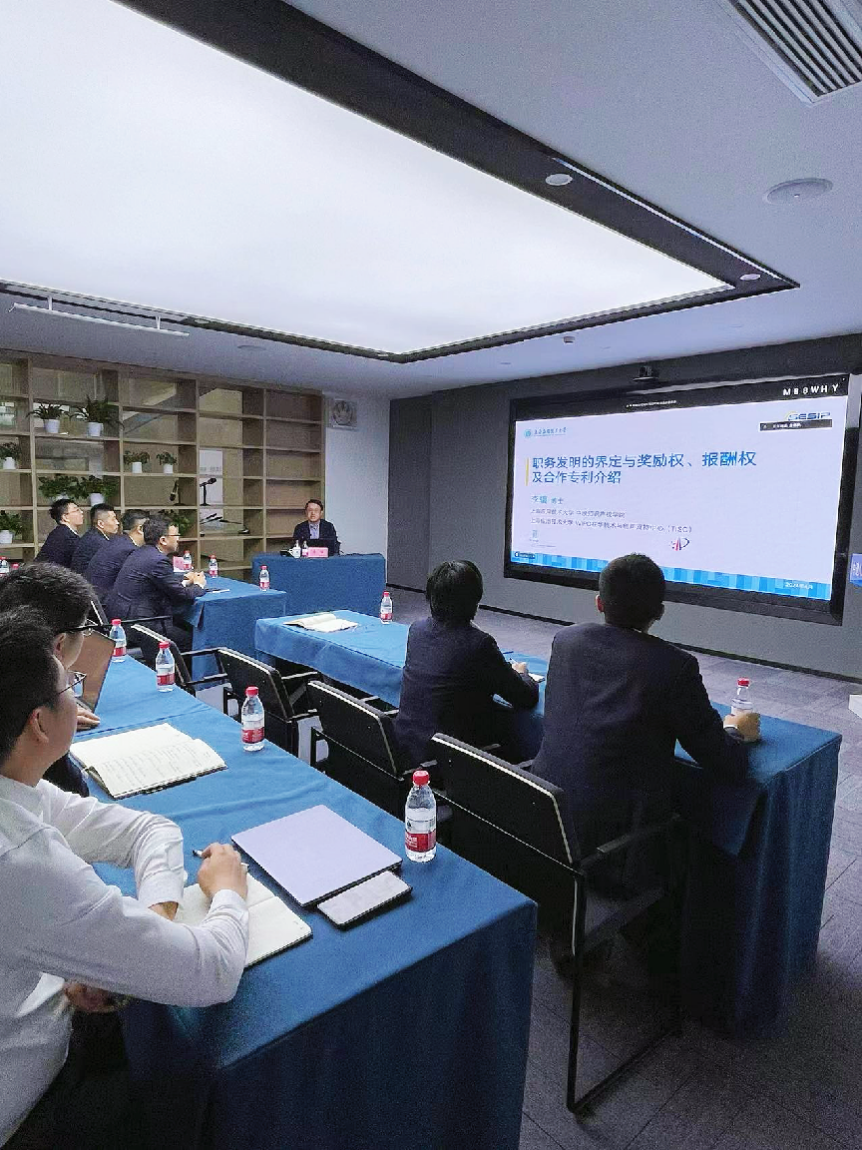 在中建八局环科公司,李骥博士从职务发明与合作专利等方面入手,结合实际案例围绕职务发明认定、职务发明奖励权和报酬权、合作专利的认定及权属分配进行讲解,对相关概念及实务操作中发明专利法律法规认定运用及专利转移转化问题作了重点提示,鼓励企业积极探索专利转移转化的有效途径,实现知识产权的价值最大化。