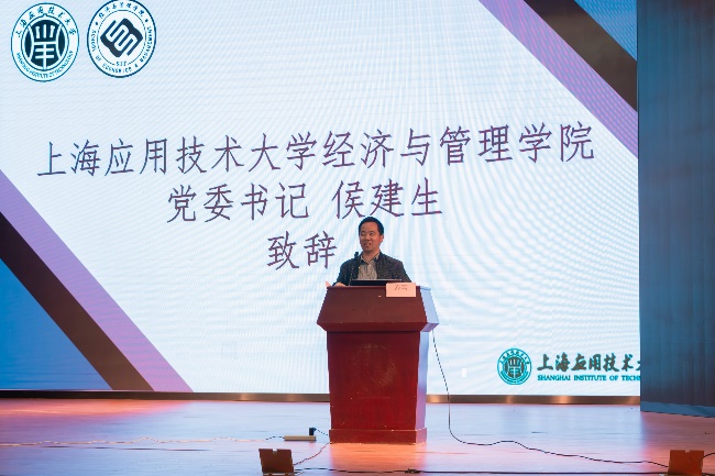 经管学院党委书记侯建生发表致辞。学校、学院致力于为同学们提供良好的就业环境,他希望搭建家校合作、校企合作的优质平台,共同推动工作全面开展。
