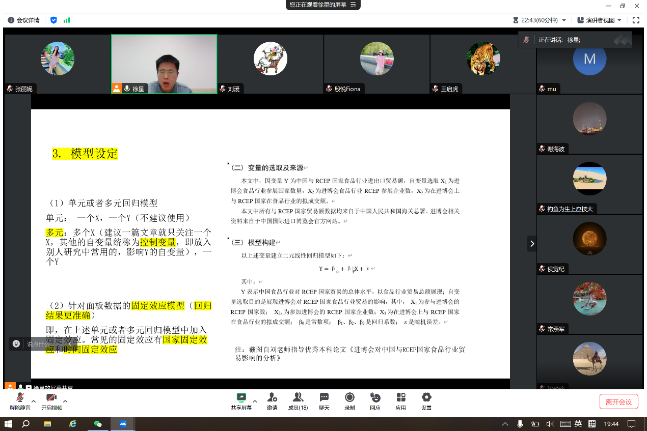 徐老师的精彩分享得到了老师们的一致好评,本次培训不仅为国贸专业的学生提供了实证分析指导,也为老师们的教学和研究工作带来了新的启发。常燕军老师和梁玲玲老师也对实证类毕业论文写作中遇到的问题提出了建议。