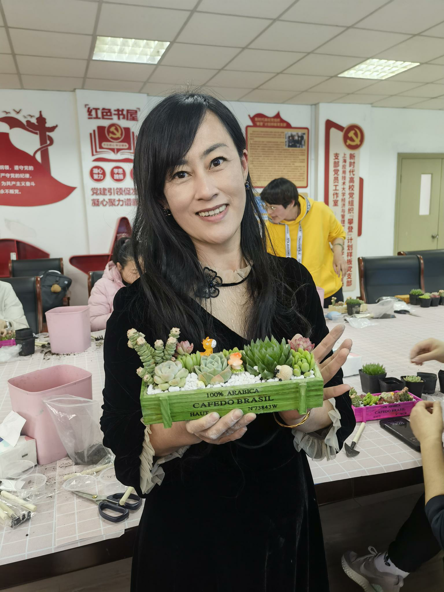 女教师们参加了现场DIY制作,她们有的运用皮革、针线等材料,制作出独具特色的手作皮革钥匙扣,展现出了手工制作的精湛技艺;有的变身巧手花匠,尽情释放自己的想象力,用可爱的多肉植物和精致的花盆,打造各具特色的纯手工盆景;有的凭借各自对美的独特理解,将每朵花、每叶草的独特之美与精巧的构思相碰撞,把绚丽多彩的花朵、苍翠欲滴的草叶经过裁剪、调整、制作成一盏盏华美雅致的花草灯。