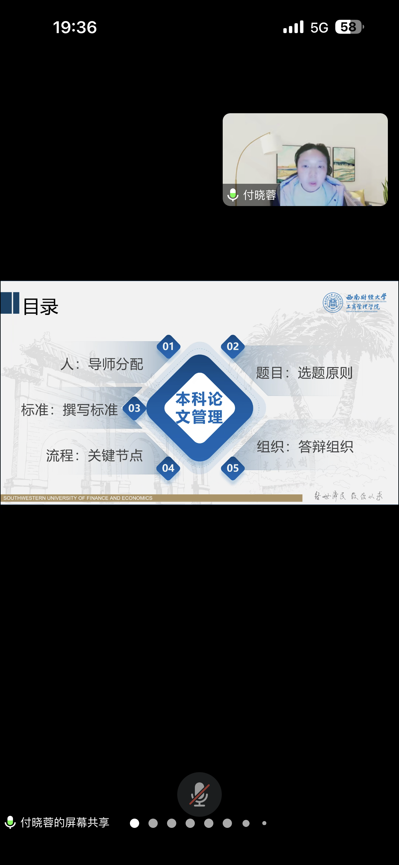 为了提高本科毕业论文的撰写质量和指导标准,经济与管理学院于2023年12月25日晚举行了“本科毕业论文管理工作经验分享”线上专题讲座。讲座由经济与管理学院院长熊焰教授主持,西南财经大学工商管理学院副院长付晓蓉教授主讲。我院各位毕业论文指导教师,部分本科毕业生聆听了讲座。