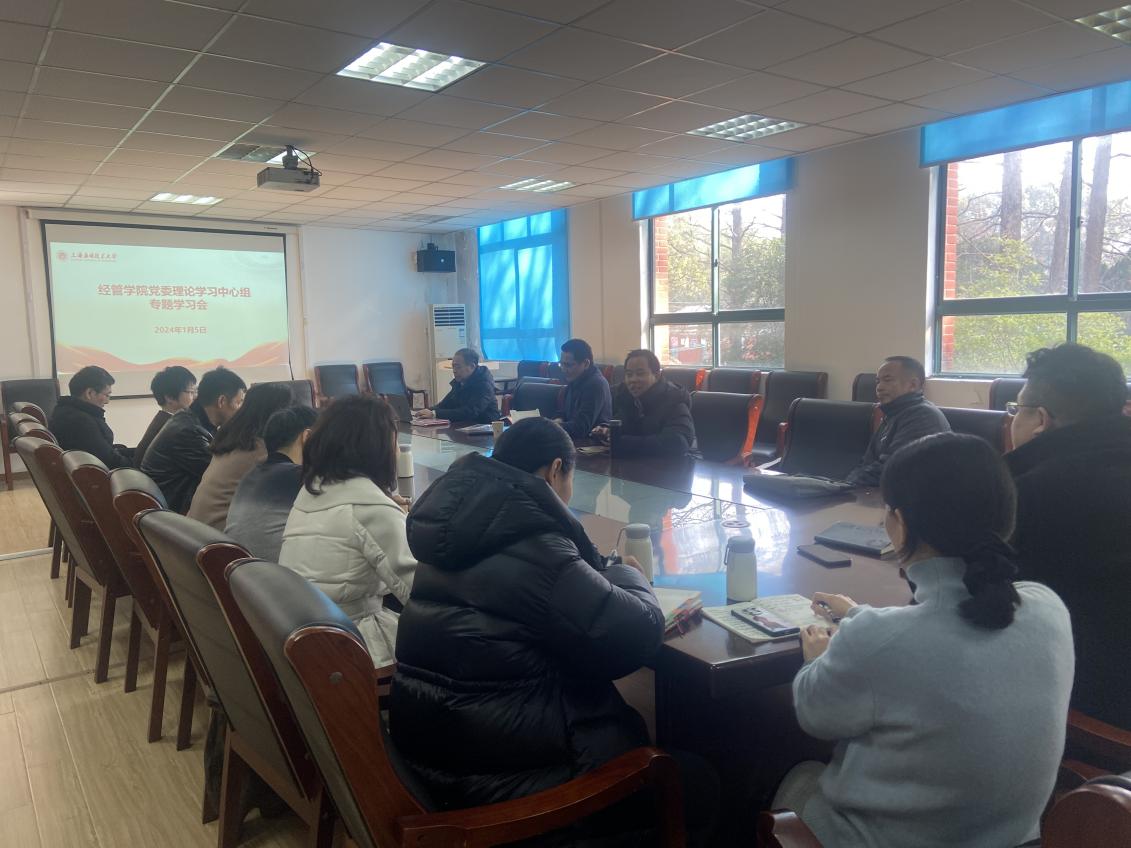 1月5日,经管学院举行2024年度第一次党委理论学习中心组专题学习会,学院领导班子、系主任、党支部书记等理论学习中心组成员和教授代表参加会议。会议由学院党委书记侯建生主持。
