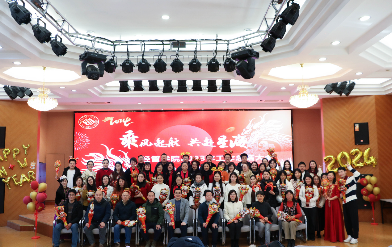 1月24日,经济与管理学院在奉贤校区工会二楼多功能厅举办“乘风启航 共赴星海” 2023年工作总结大会暨2024年迎春联欢会。学院领导班子成员、全体教职工及学生代表欢聚一堂,总结过去成就、共享新年喜悦、展望美好未来。活动由沈佳、彭烨主持。