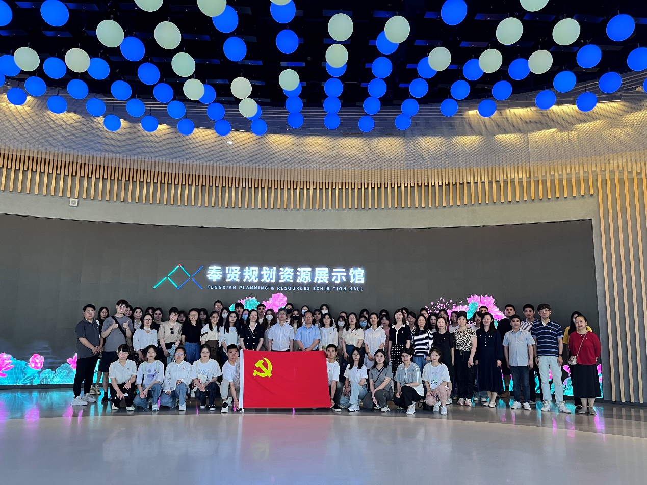 会议分为实景党课和共建联学两个阶段。根据主题教育理论学习要求,机关党委书记许建强、经管学院党委书记侯建生分别领学了《习近平关于城市工作论述摘编》以及《党的十八大以来习近平总书记对上海工作的重要指示汇编》。结合领学内容,双方党委师生在第一阶段学习中,赴奉贤区规划展示馆、奉贤区博物馆进行实景党课的学习。老师同学们徜徉于学校所在的奉贤区的规划展示中,看到了学院“百村百企”共建单位南桥镇六墩村的乡村振兴历程,在奉贤区全景模型中的展示中感受城市发展的力量,真切体验原文原著中的原理成果。许建强表示,这次共建联学是在理论学习的基础上,通过党支部结对,推动发展,相互促进、形成合理的有效探索。
