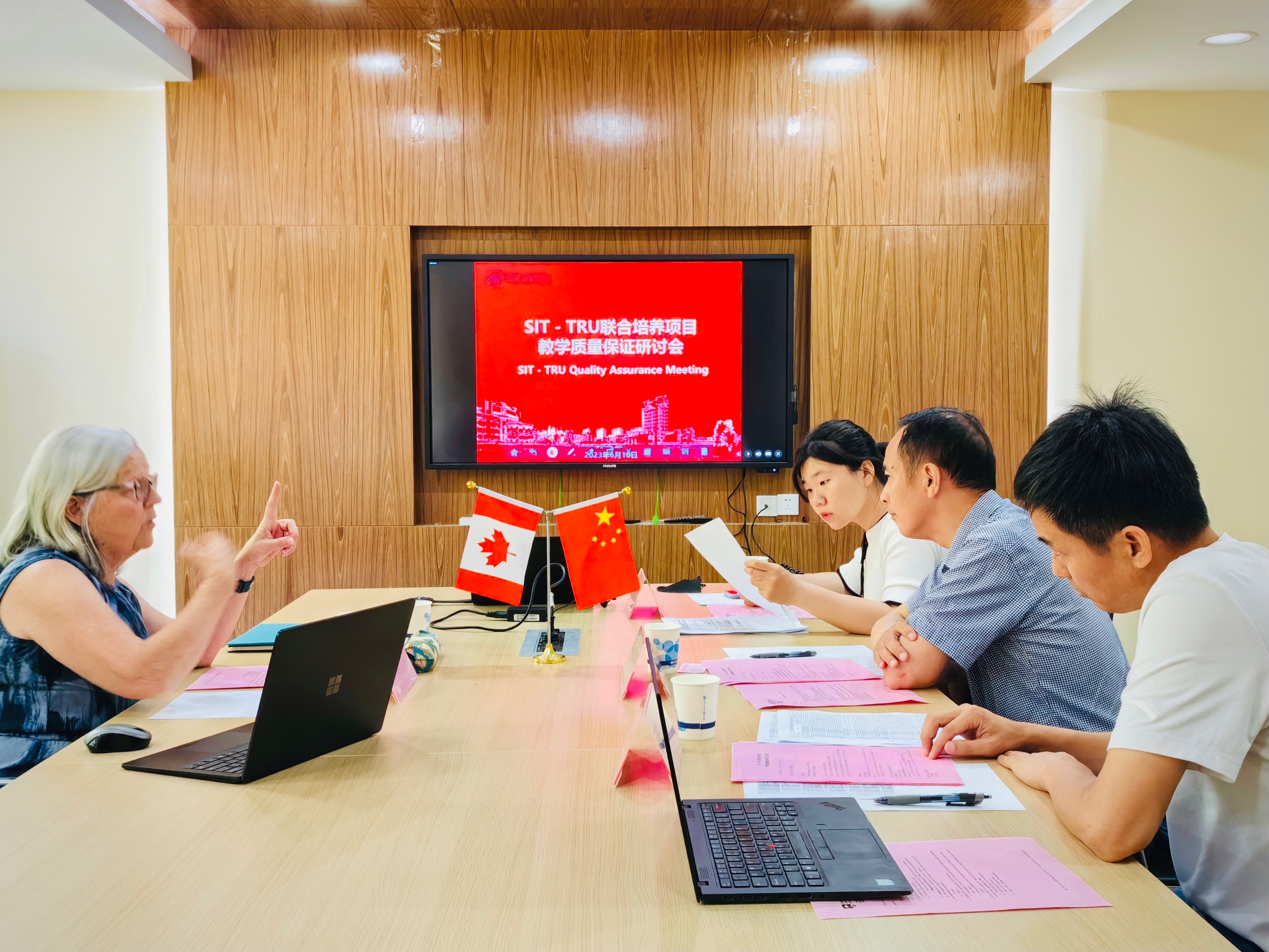 6月16日上午,经管学院召开SIT-TRU联合培养项目教学质量保证研讨会,我院副院长张金福、市场营销系系主任张义、市场营销(中加合作)项目负责人张丽妮、市场营销(中加合作)项目助理姜悦出席会议,加拿大汤姆逊大学SIT-TRU联合培养项目教务协调专员丽莎·雷克出席会议。