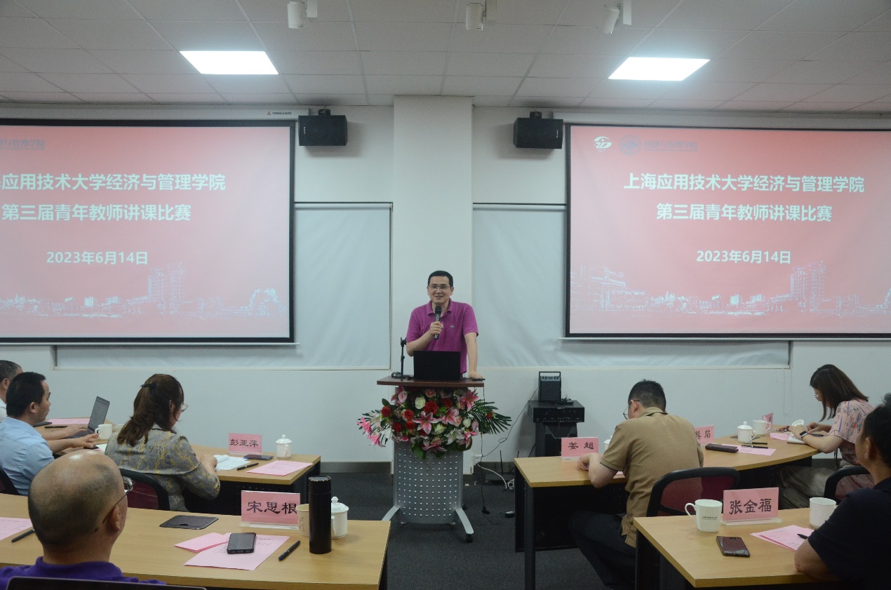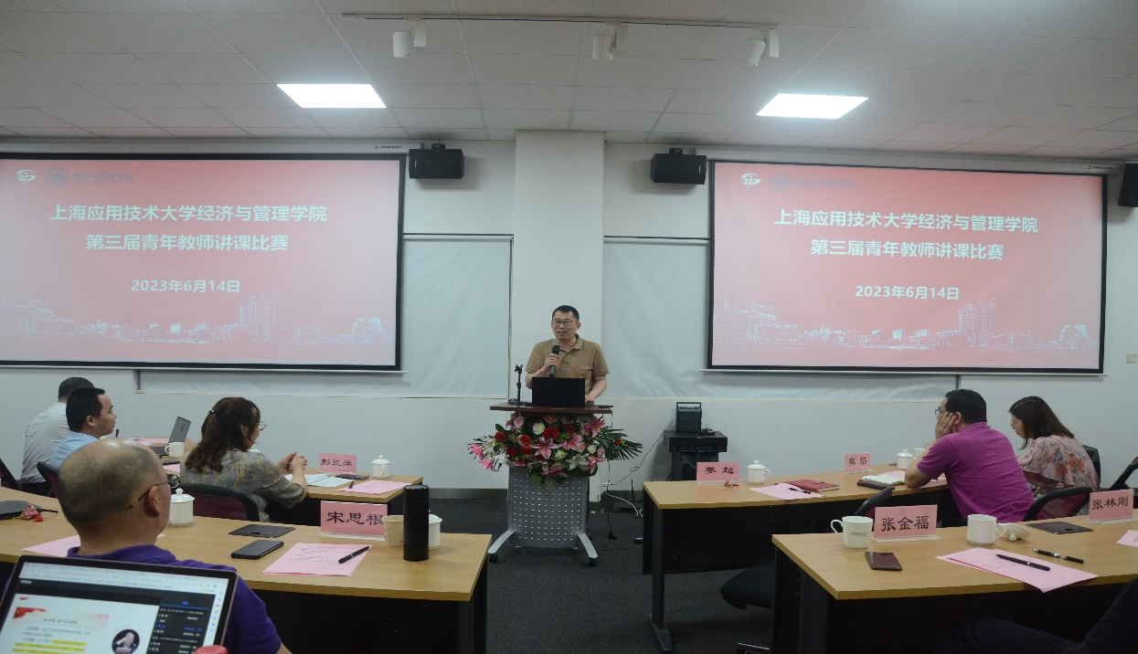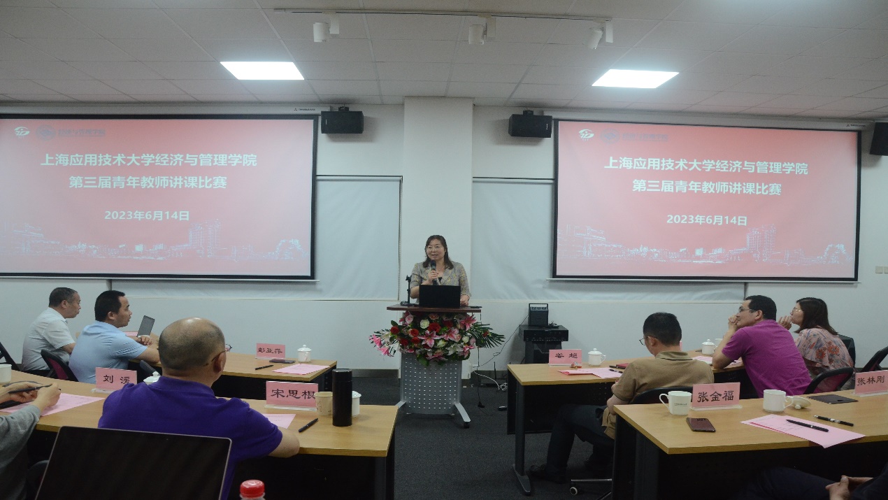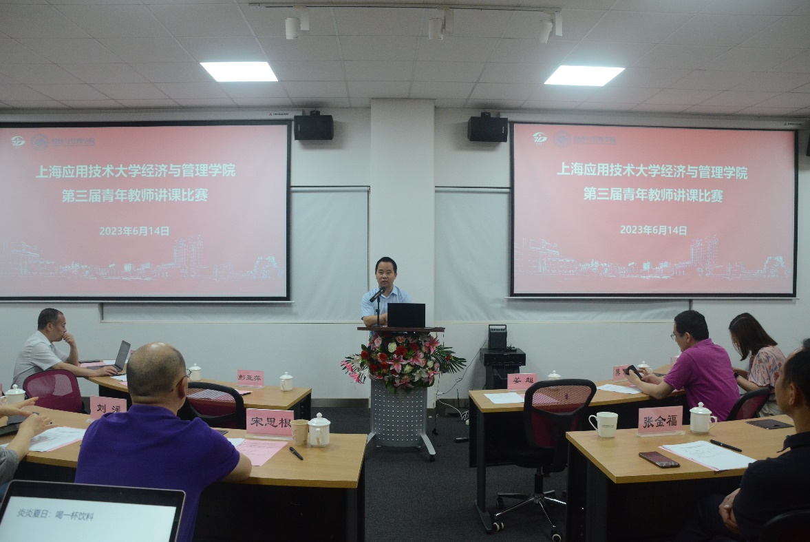 为进一步提高广大青年教师的教学水平、业务素质和执教能力,促进青年教师专业成长与发展,2023年6月14日,经济与管理学院第三届青年教师讲课比赛在第五学科楼B408举办。会议特邀校教师工作部副部长、人事处副处长彭亚萍和教务处副处长姜超担任评委,经济与管理学院院长熊焰,党委书记侯建生,副书记、副院长朱菁,副院长张金福、于本海,学院中层干部、教授代表等担任评委。经济与管理学院分工会主席沈佳主持讲课比赛。