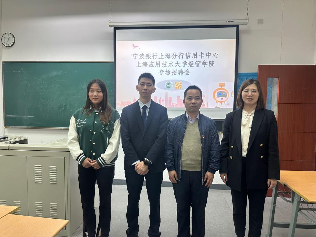 为广泛开拓毕业生就业渠道,提升人才培养质量和学生就业质量,加强校企合作、推进产教融合,促进学生高质量就业。经济与管理学院邀请宁波银行上海分行信用卡中心副总经理王东宝一行来访,在徐汇校区开展“访企拓岗”系列活动,学院书记侯建生,副书记、副院长朱菁参加会议,双方就人才招聘、实习实践基地共建等事宜进行了充分交流。