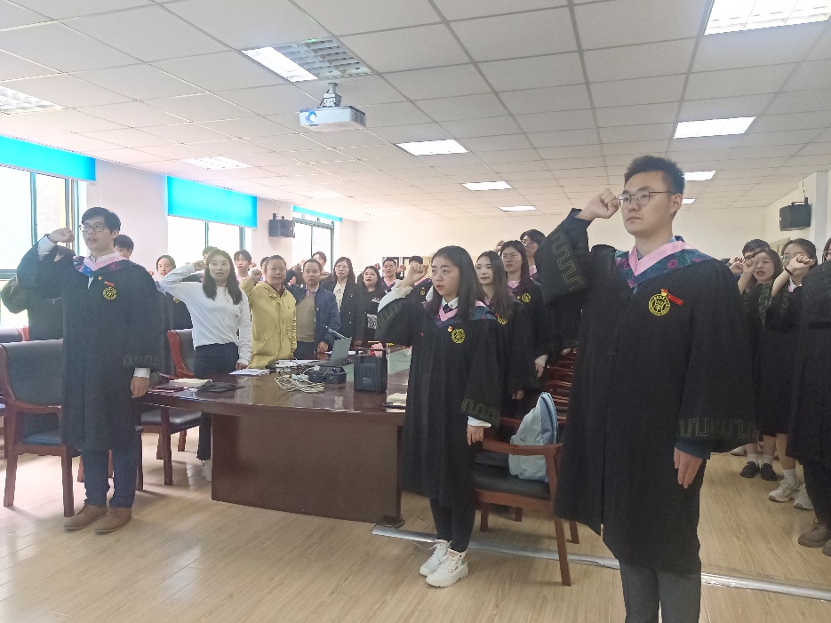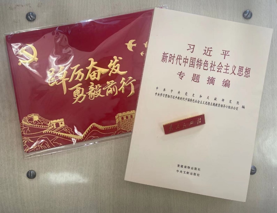 学院党委、毕业班党支部支委,为毕业生党员佩戴“为人民服务”徽章以及颁发政治纪念卡,鼓励党员们时刻牢记全心全意为人民服务的宗旨。在会上,结合主题教育工作的总体部署,学院也为每位党员发放了《习近平新时代中国特色社会主义思想专题摘编》,全面启动主题教育的理论学习。随后,全体到会党员重温入党誓词。