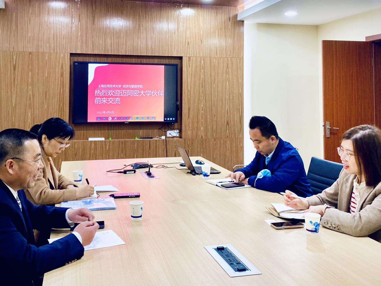 4月4日,经济与管理学院党委书记侯建生、副书记朱菁亲切接待了森商学院亚太区董事总经理、迈阿密大学商学院招生主管陈欣章,学院外事秘书姜悦、学生辅导员米叶沙尔·外力参会。