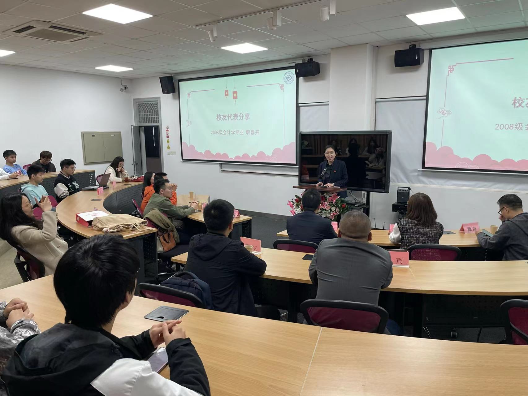 “共话成长·校友代表分享会”上,来自金融行业、建筑行业等多个行业领域的优秀校友代表分享他们的校园经历和成长过程,以“过来人”的身份与在校生交流,回忆校园学习生活,畅谈求职择业、职业发展与人生选择等话题。