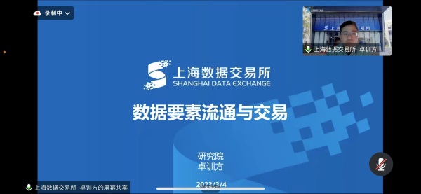 3月4日,上海数据交易所有限公司研究院高级研究员、淡江大学财务金融学博士卓训方受邀做了题为《数据要素流通与交易》的精彩报告。经济与管理学院师生近120人在线参加。讲座由经济与管理学院副院长于本海教授主持。