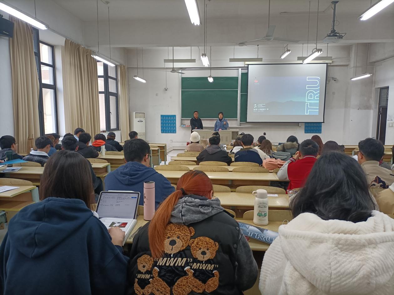 张允飞介绍了汤姆逊大学的教育资源、与经管学院密切相关的学科、学校环境及两校合作项目具体事宜,同时就留学学习中英语能力要求、学习内容等方面进行了详尽解答。