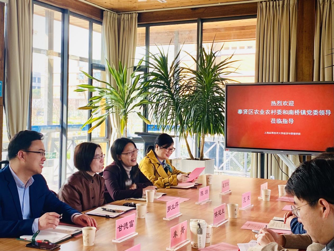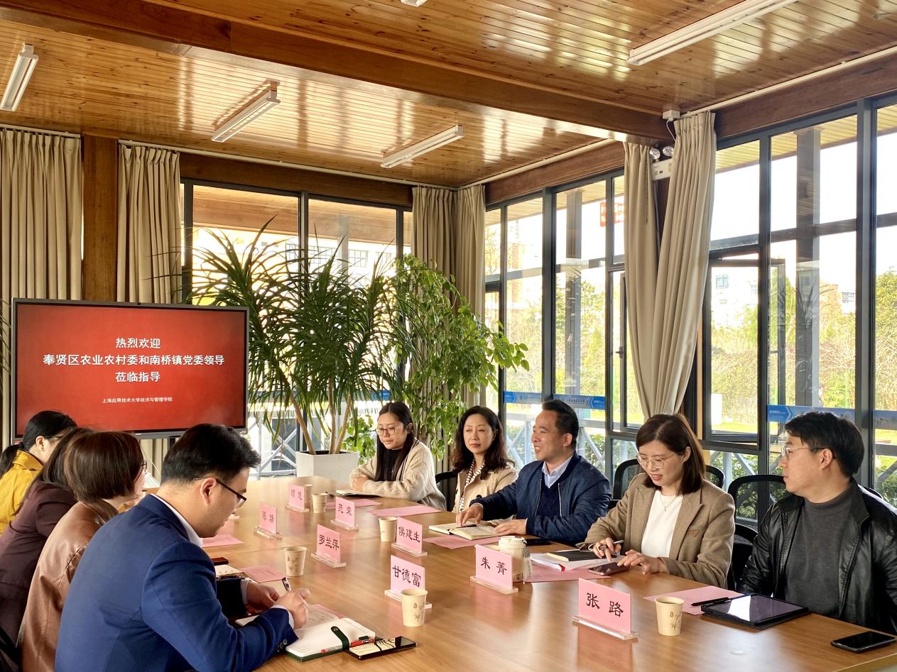 2023年3月9日,经济与管理学院党委与奉贤区农业农村委和南桥镇党委举办区域化党建合作交流研讨会议。上海市奉贤区农业农村委副书记、副主任罗兰萍,上海市奉贤区农业农村委党群办主任陈靖,上海市奉贤区奉贤区南桥镇党委委员(组织) 甘德富,上海市奉贤区南桥镇党群服务中心主任瞿丽庆受邀出席本次会议。经管学院党委书记侯建生、党委副书记、副院长朱菁、经济与管理学院管理科学与工程系教师苑荣、经济与管理学院党委专职组织员顾慧、经济与管理学院团委副书记张路参加会议。