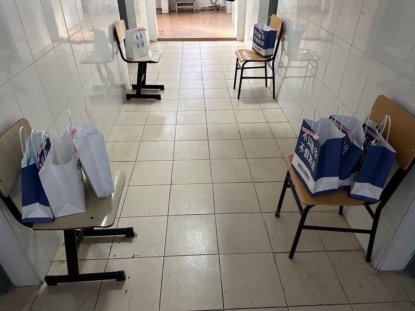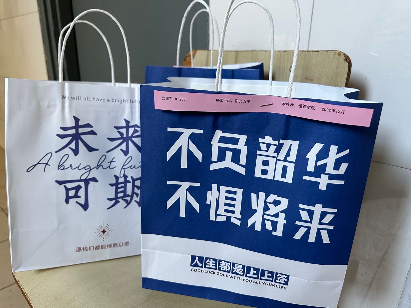 为了不打扰考研同学专心复习,也为了同学们的安全考虑,辅导员老师们挨门挨户将”盲盒“礼袋送到了学生宿舍门口,完成了无接触配送。在特别的时期,将特别的爱,以特别的方式,送给特别的考研学生们。