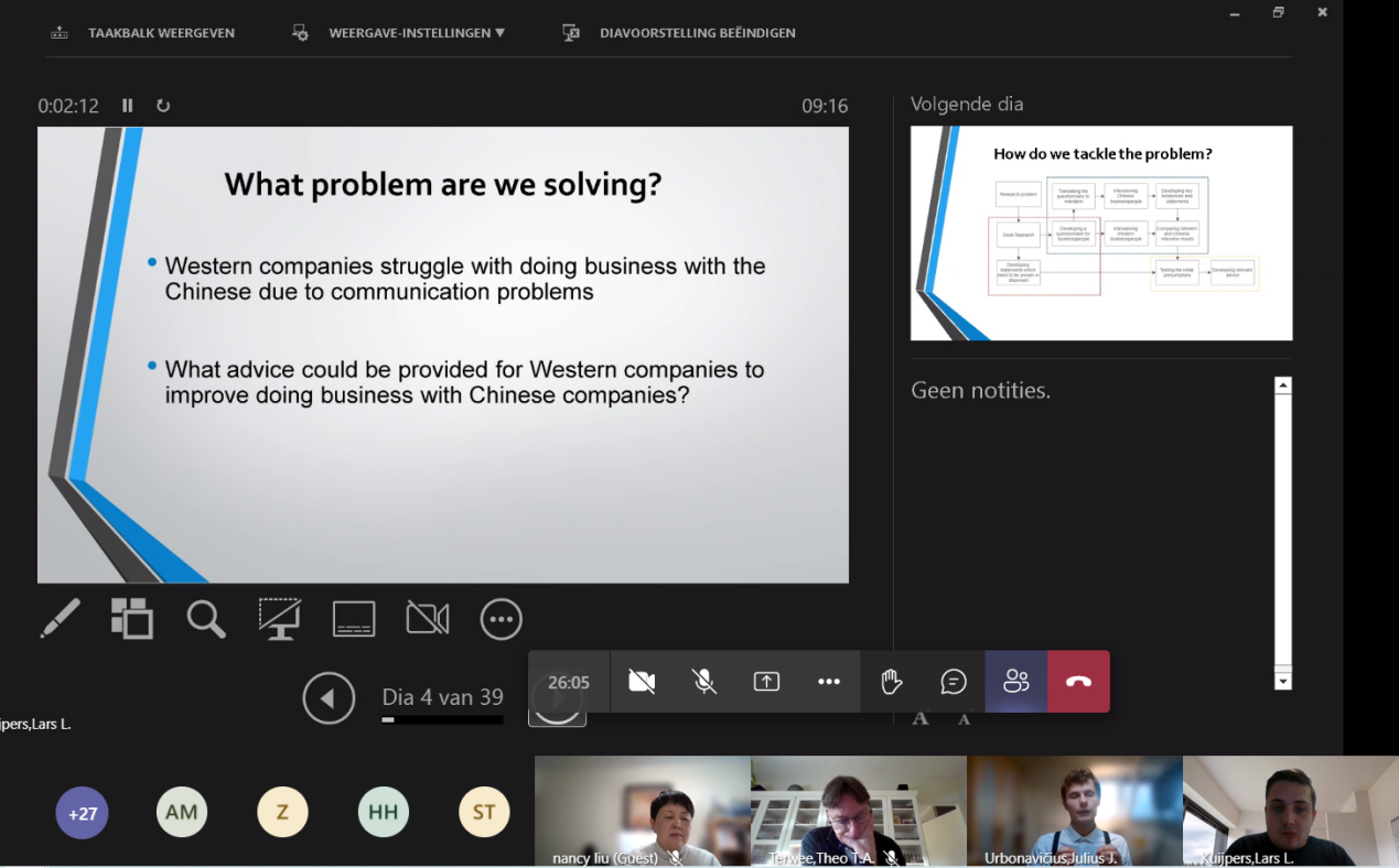 第二小组与Fontys方小组的同学就国外贸易商如何与中国进口商进行合作展开一系列调研,通过采访、查阅资料等形式,多方面了解外贸商所需要持有的相关法律证明、沟通渠道、中国进口商喜好等相关问题。具体主题是:“荷兰与中国之间的蔬果贸易”。