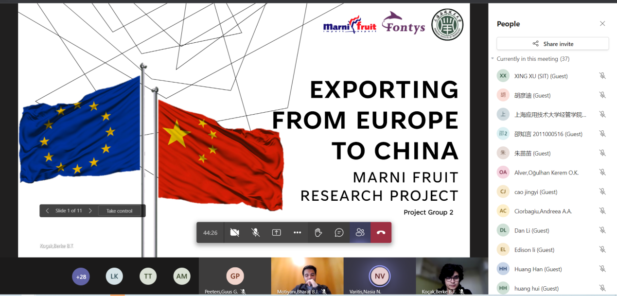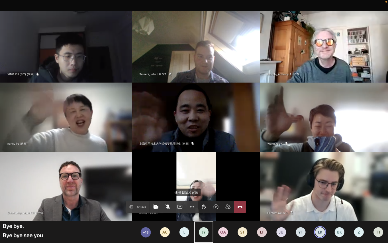 2023年1月30日,上海应用技术大学与荷兰方提斯应用科技大学合作举办的第五届“中国经济周”国际交流项目顺利闭幕,我院国际商务系和荷方学生顺利完成结课汇报,全部学生顺利结业。荷兰方提斯应用科技大学新任商学院院长拉尔夫·迪赛多普,项目发起人墨菲·安东尼、王悠,上海应用技术大学经济与管理学院党委书记侯建生、国际商务系主任刘湲以及教师徐星等人参加学生的“云”汇报,并出席了活动的闭幕式。