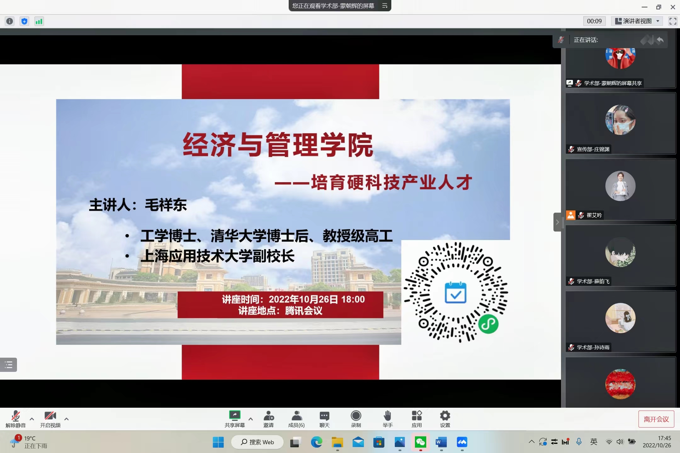 为进一步落实立德树人根本任务,贯彻“三全育人”重要理念,为新生系好第一粒扣子。近日,经济与管理学院2022级新生入学教育拉开帷幕,首场讲座特邀副校长毛祥东担任主讲。这也是毛校长连续第三年与经管学院全体新生展开交流。出席本次活动的嘉宾还有经济与管理学院党委书记侯建生。讲座由经管学院党委副书记、副院长朱菁主持。