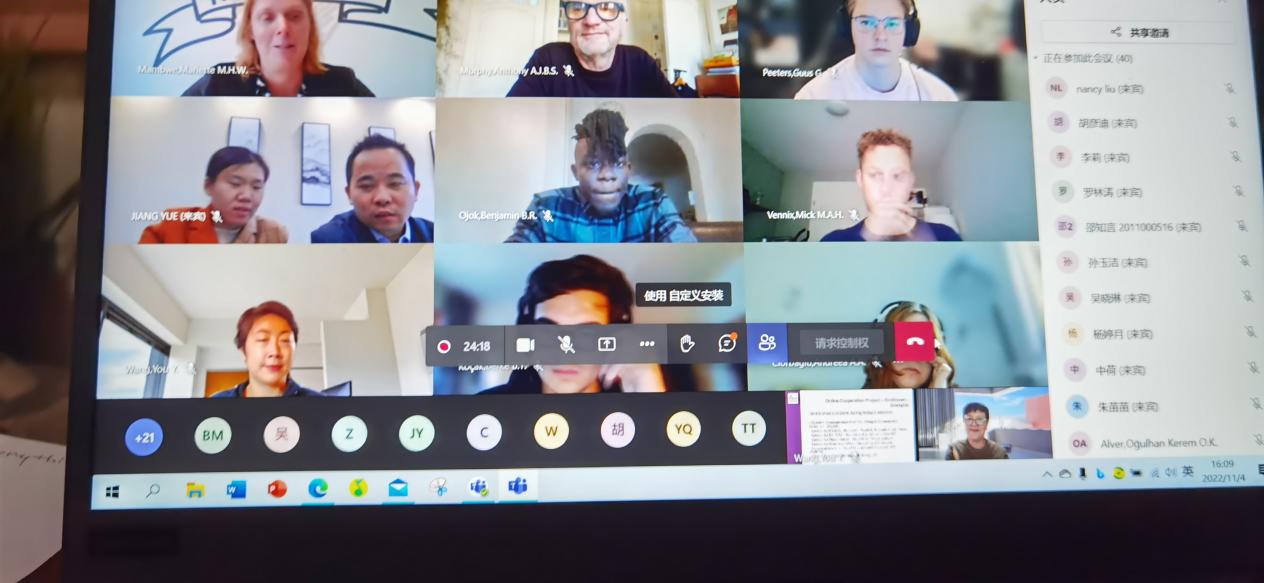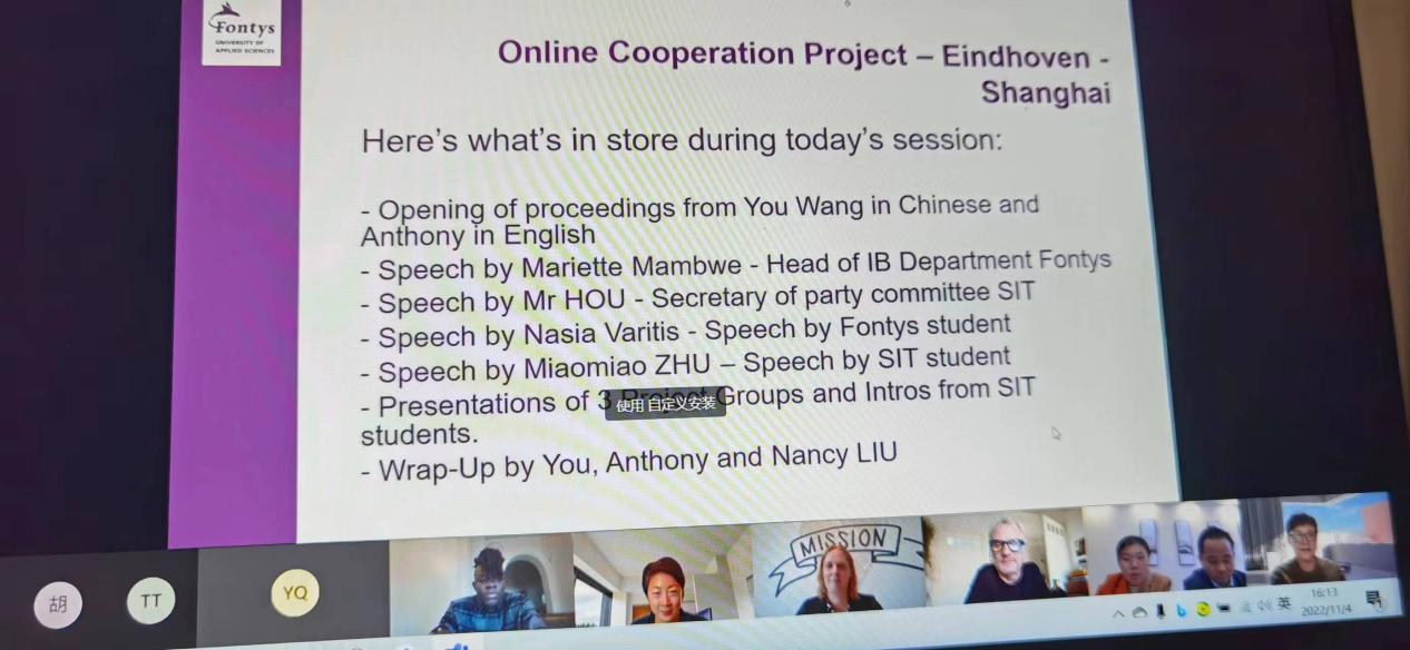 2022年11月4日,上海应用技术大学与荷兰方提斯应用科技大学合作举办的第五届“中国经济周”国际交流项目顺利“云”开班。荷兰方提斯应用科技大学国际商务系主任玛丽埃特·曼布韦(音译),项目发起人墨菲·安东尼(音译)、王悠,上海应用技术大学经济与管理党委书记侯建生,国际商务系系主任刘湲等出席此次“云典礼”。中荷两校教师以及参与交流项目的全体学生同时在线参与开班典礼。
