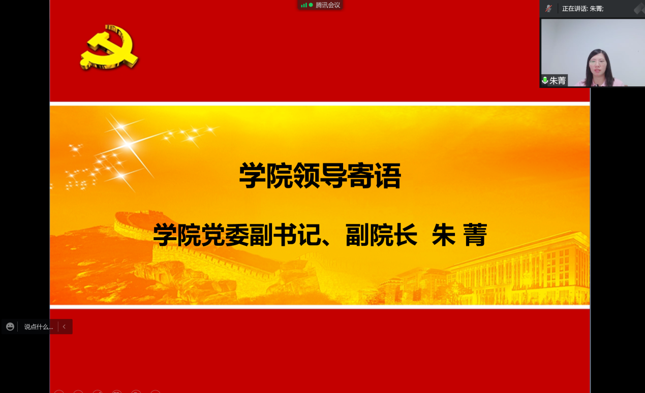 随后,学院领导向毕业生党员表达了深切的期望以及衷心的祝愿。侯建生表示,希望各位毕业生党员认真学习习近平总书记在共青团成立100周年大会上的重要讲话精神,始终坚定理想信念,一心一意跟党走,为中国梦贡献力量;始终牢记学校大学精神和校训,走向社会后坚守党员责任,乐观进取、诚实做人、踏实做事,展现党员风采,不忘初心,砥砺前行,做新时代有理想、有担当的经管人。朱菁对毕业生党员殷切寄语,希望同学们身为一名党员,不要忘记自己的党员身份和党员的宗旨。身为一名经管人,把“经世致用、管智笃行”的院训内涵深刻于心,将人生追求和国家、民族的发展结合起来,在青春的赛道上跑出最好的成绩。怀抱感恩之心,在新的舞台上继续发挥模范带头作用,时刻绽放党员光辉,用实际行动为母校争光添彩。