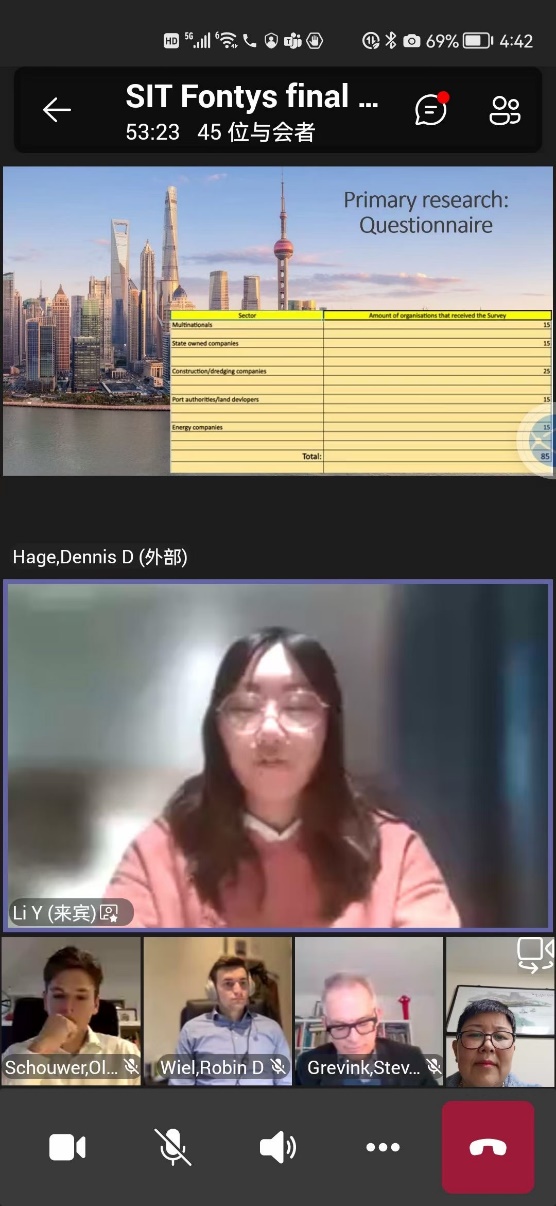 结课汇报前,荷兰方提斯应用科技大学的王悠老师对双方学生在交流合作中所付出的努力和取得的成果进行了肯定。在接下来各小组的汇报中,两校学生对自己小组的研究问题和发现做了细致的阐述。