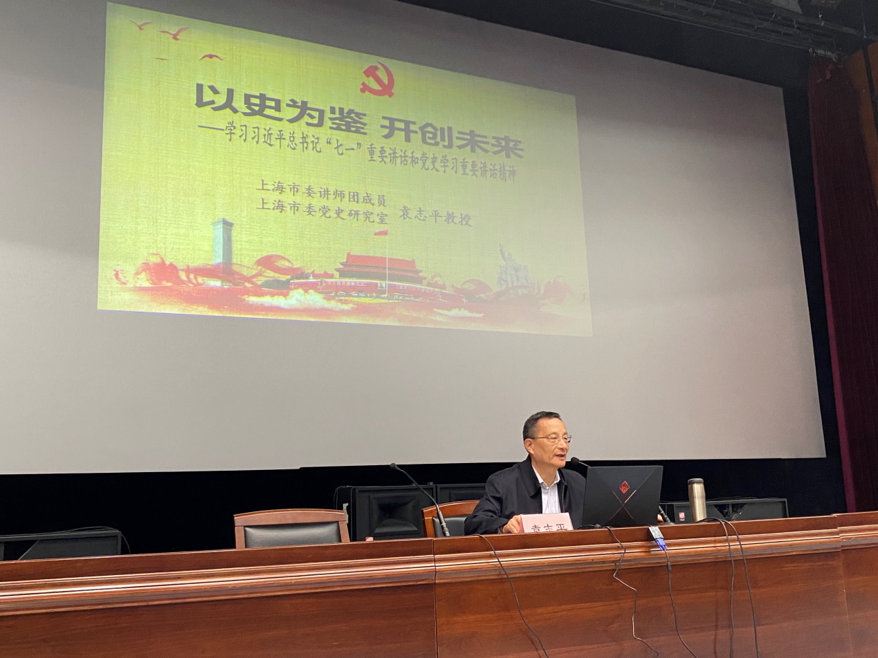 袁志平教授围绕“小康社会建设的战略部署、提出推进”“解放思想、调整社会关系、完善基本制度”“化解风险挑战、坚持中国道路、不断推进改革发展”“奋进新征程、牢记初心使命、为党和人民争取最大光荣”等四个方面展开授课,以深厚的学术功底和对党史的深刻研究,对“学习习近平总书记‘七一’重要讲话和党史学习讲话精神”作了全面系统的解读阐释。对于师生党员和入党积极分子学习领会 “七一”重要讲话精神,具有很强的指导意义。