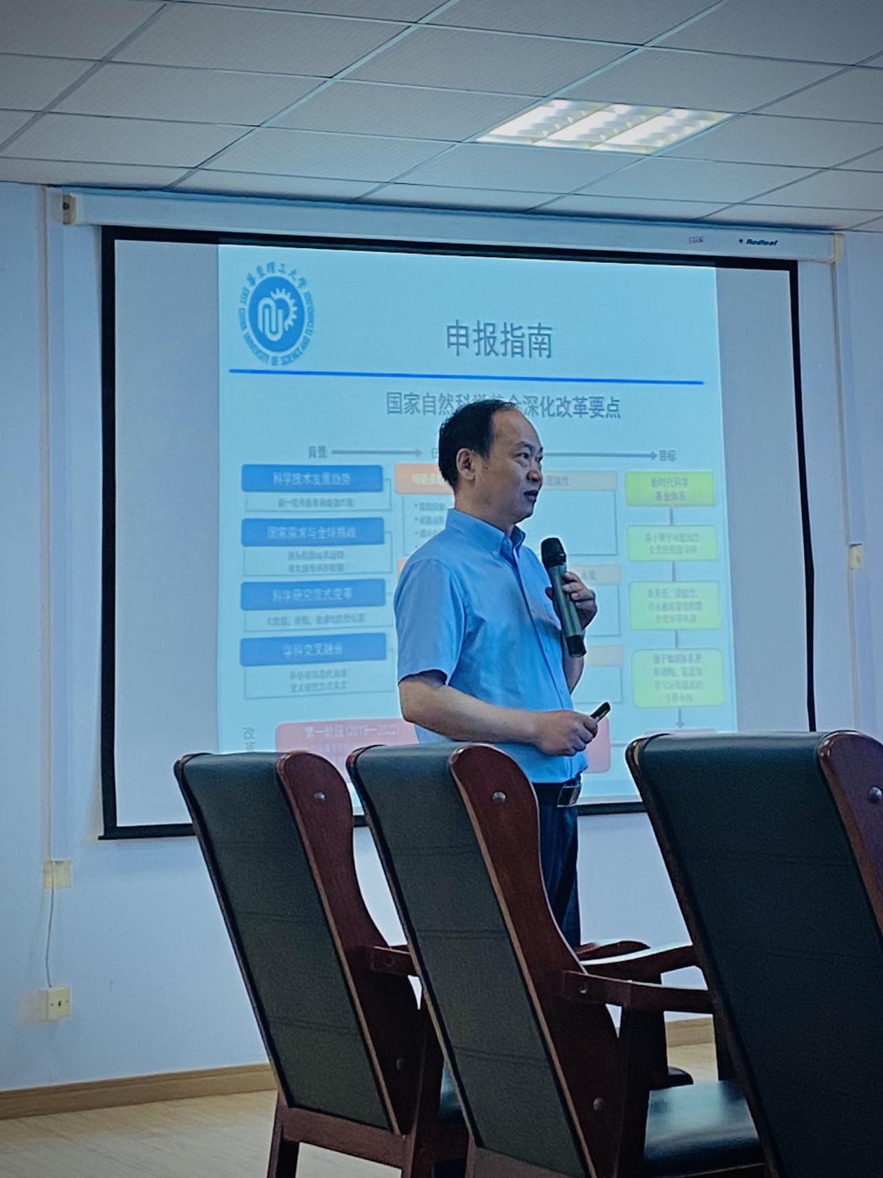 范体军教授先是讲解了国家自然学科基金深化改革的要点,强调了当下新时代学科基金的申报重点:资助导向更明确、评审机制更完善、学科布局更优化;再以自己的经验,结合具体例子向老师、同学们讲解了基金申报的注意事项:题目要有新意、研究目标要适当具体化等;指出基金申报既考验教师们的想法本身,又考验表达措辞中的语句凝练。