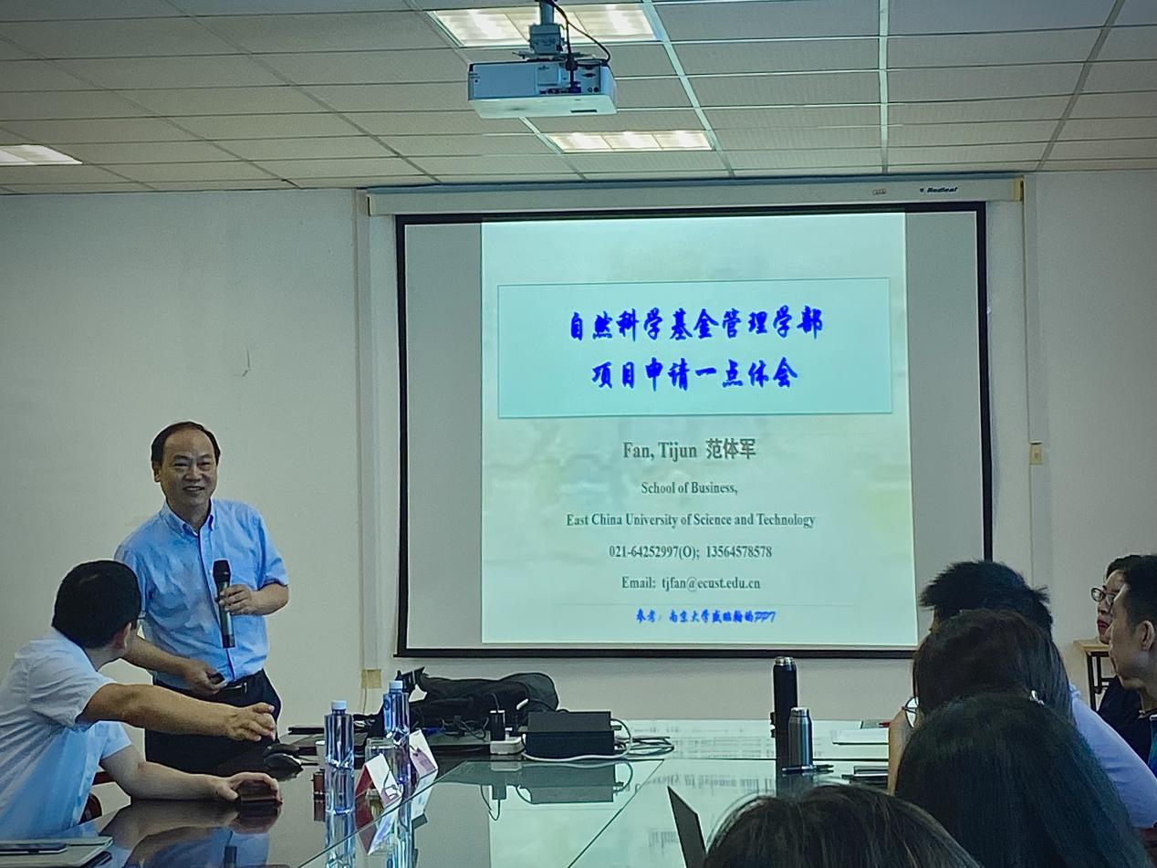 9月22日上午,经管学院在徐汇校区34号楼201室举办第6期青年教师成长计划讲座,邀请华东理工大学文科处处长范体军教授与青年教师和同学们分享自己对于基金申报方面的心得体会,经管学院院长熊焰主持会议。