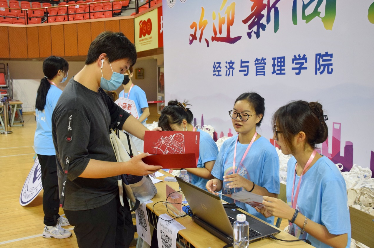 金秋九月,经管学院迎来了2021级新生来校报到。校党委书记郭庆松,校党委副书记、校长柯勤飞,校党委副书记、副校长王瑛,校党委副书记陈海瑾,校党委学工部部长袁翔等多位校领导和部门负责人,学院院长熊焰,院党委书记侯建生,院党委副书记、副院长朱菁等莅临现场查看新生报道情况,与新生亲切交流。