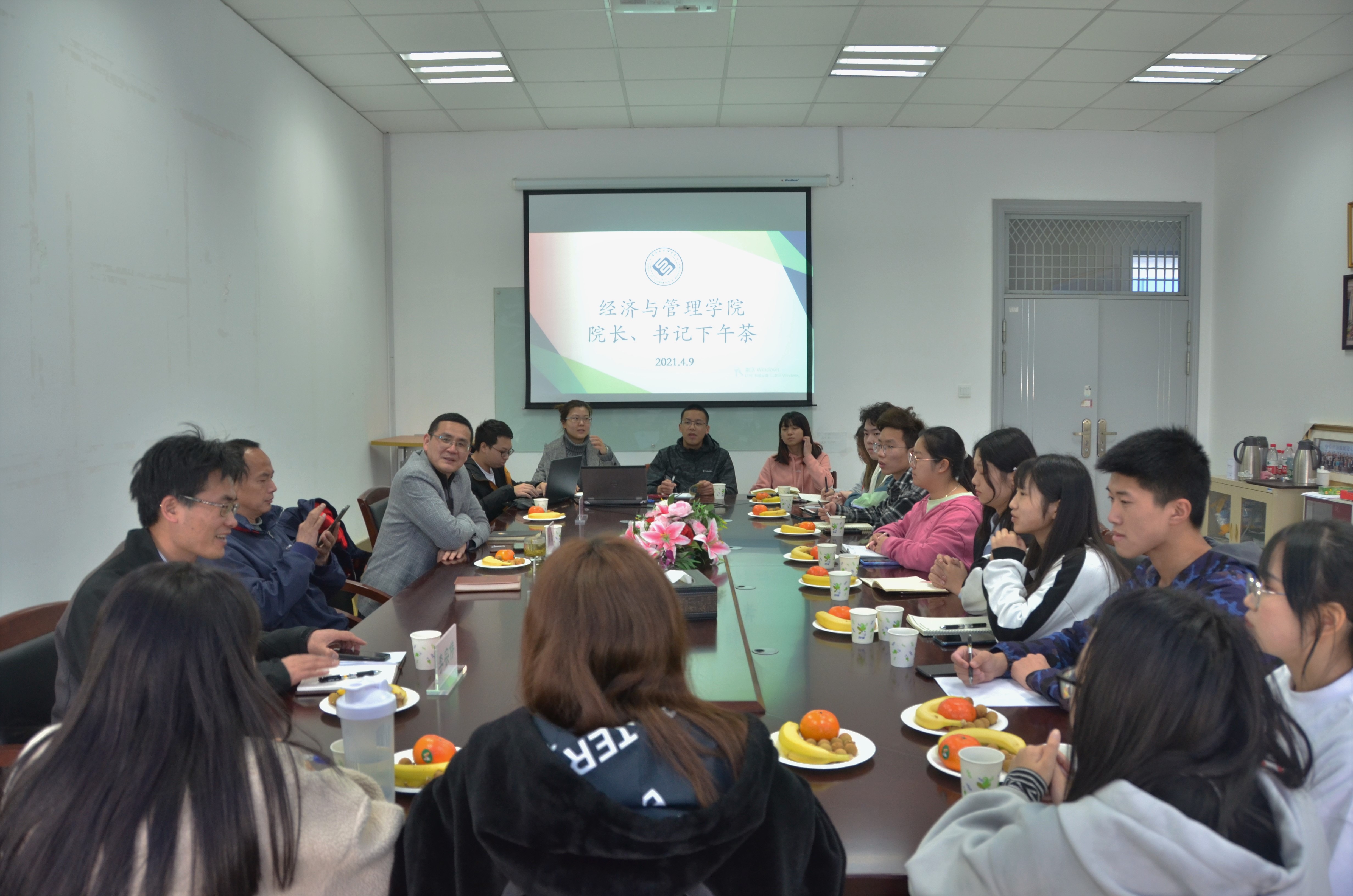 2021年4月9日,经济与管理学院首期“书记院长下午茶”活动于第五学科楼A221顺利举行。经济与管理学院院长熊焰教授,副院长张金福教授,工商管理系主任张义老师,院科学与工程系主任李宗伟老师担任首期“院长书记下午茶”嘉宾,主要围绕专业未来发展与实际运用、考研、留学等同学们提出的问题,一一给予答疑解惑,近20名学生代表报名参加了本次活动。