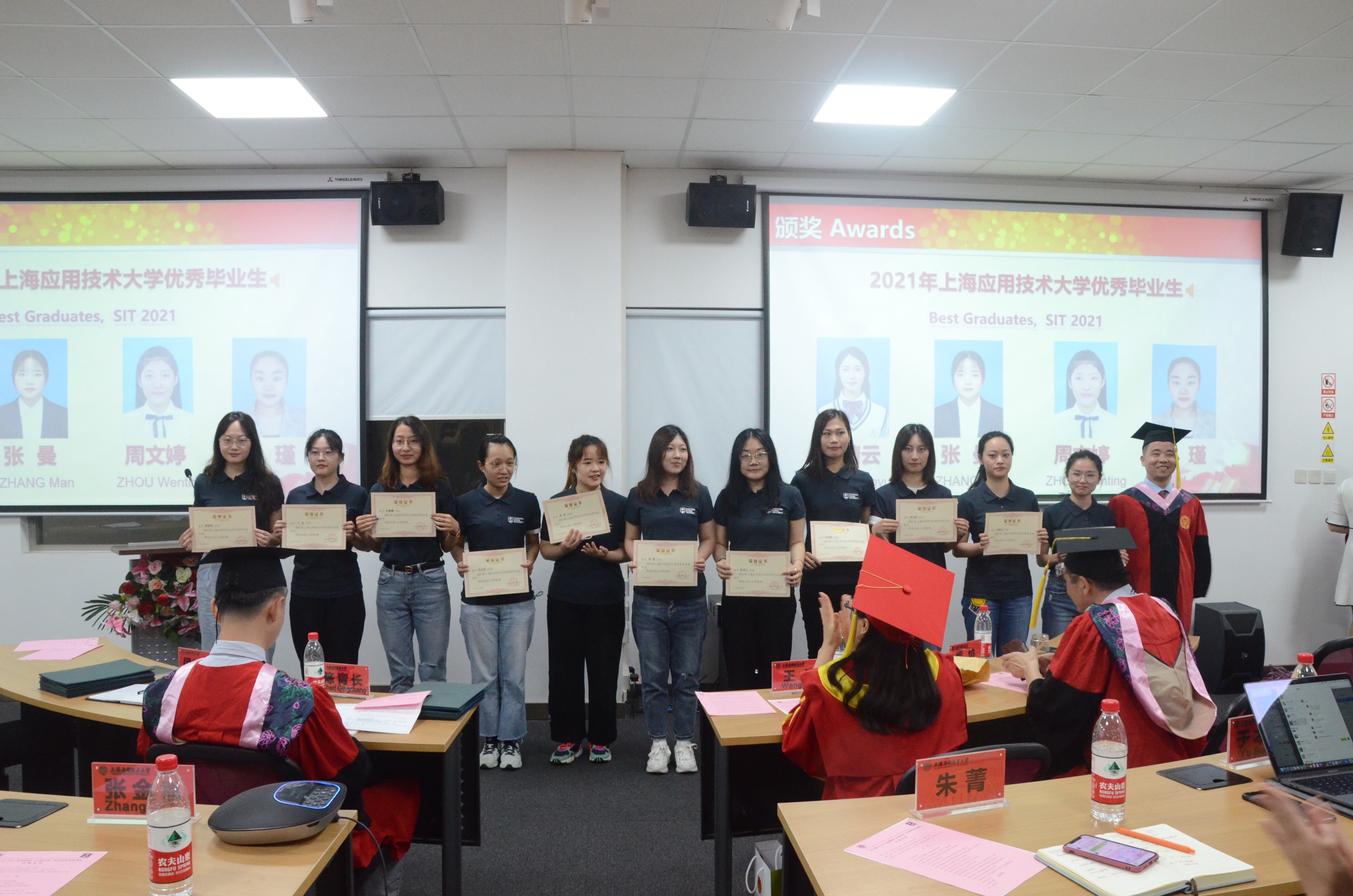 典礼上宣读了上海市优秀毕业生、上海应用技术大学优秀毕业生名单并颁发证书;宣读了汤姆逊大学Top GPA和TRU Star名单并颁发奖品,会议现场气氛隆重而热烈。